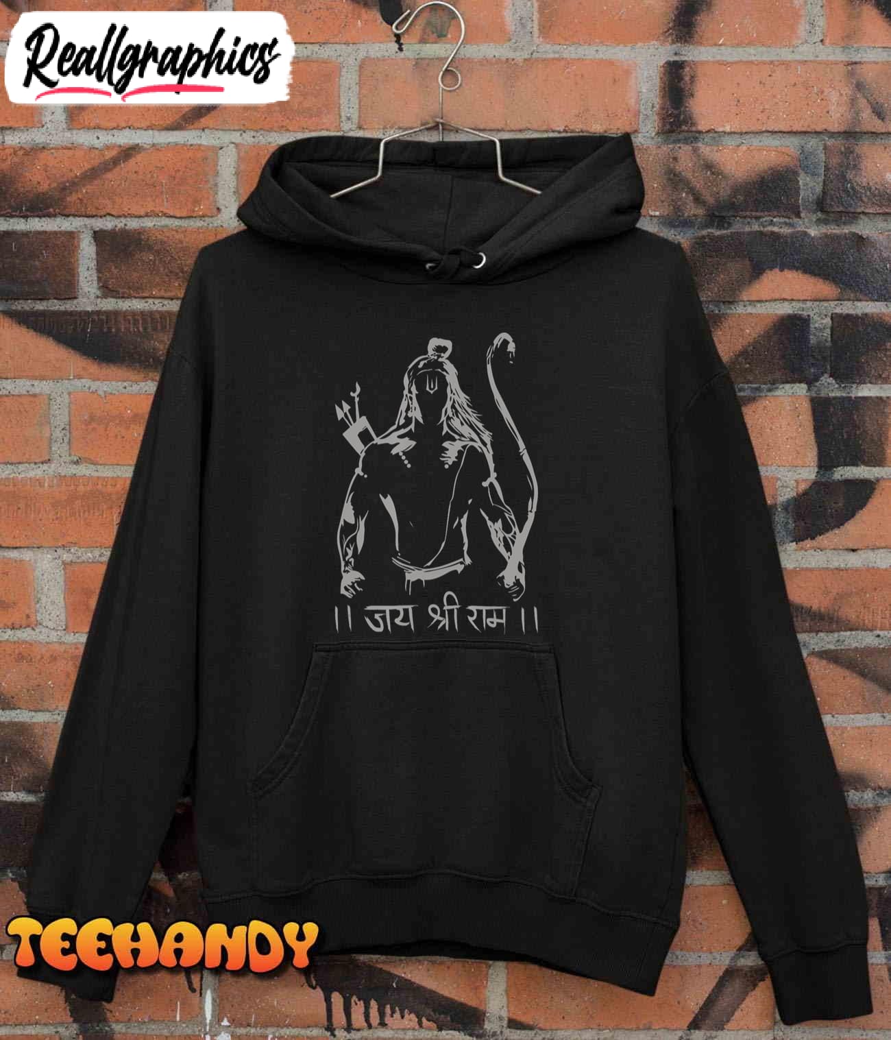 The Jai Shri Ram tshirt Unisex Shirt is a fashionable and versatile option for both men and women. Featuring a unique design and high-quality fabric, it offers comfort and style. Wearers can showcase their admiration for the Hindu deity Ram by donning this exclusive t-shirt. Perfect for casual outings or as a statement piece, this shirt is a must-have for those looking to express their devotion to their faith.