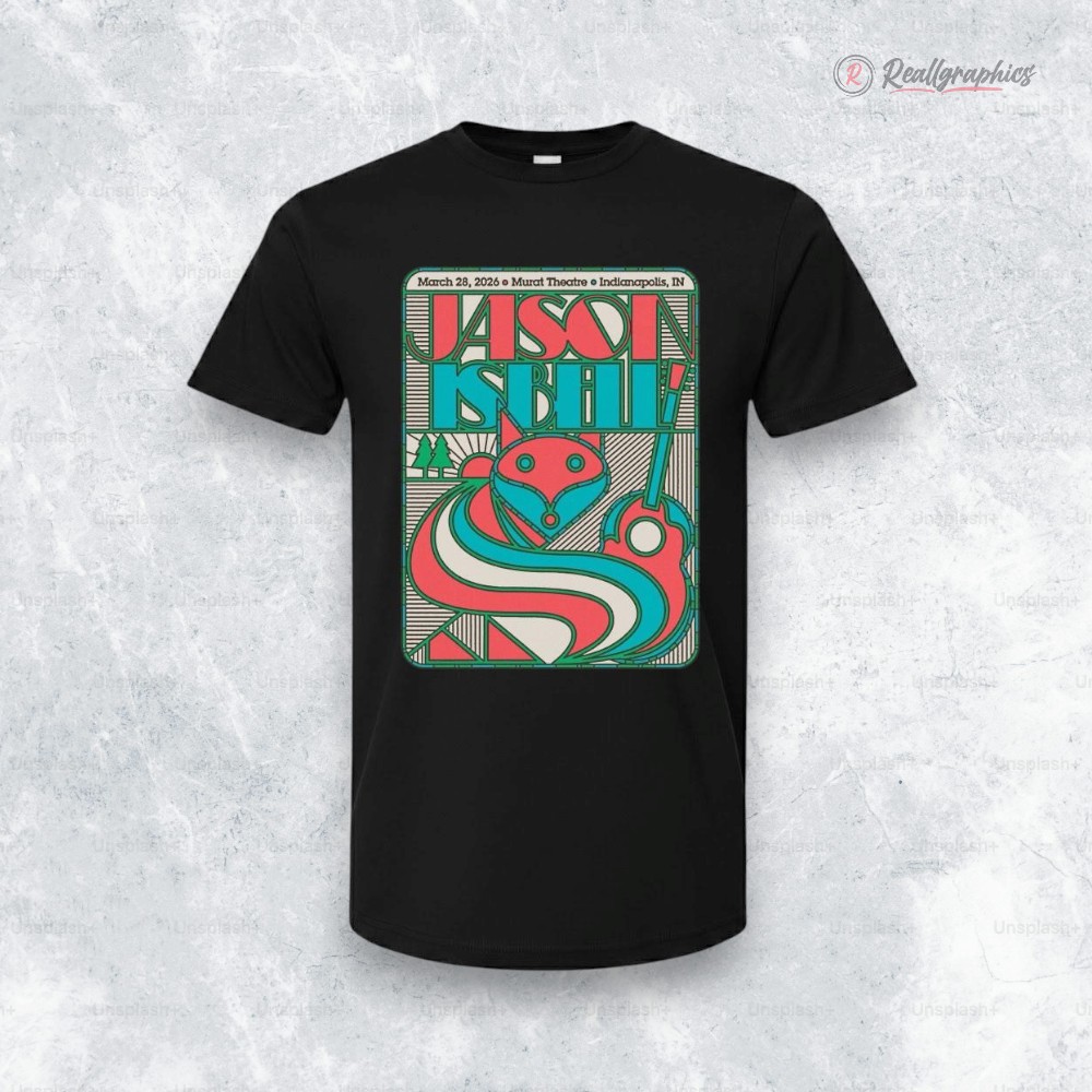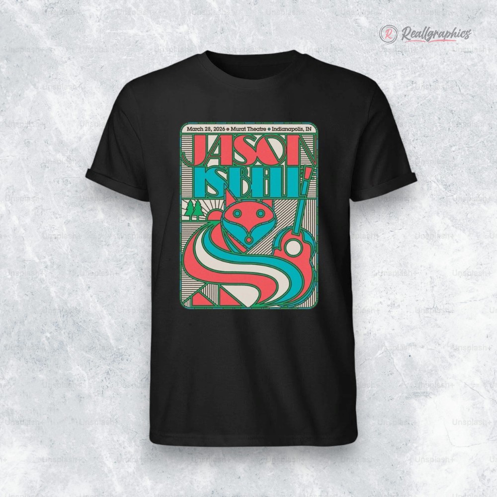 Jason Isbell’s music carries a raw sincerity that resonates deeply with those who find meaning in lyrics and melody alike. This poster shirt designed around his March 28, 2026, concert at the Old National Centre captures more than just the event—it channels the spirit of his storytelling through a bold, vintage lens. The design’s use of abstract geometric shapes in teal, red, and pink immediately draws the eye, while also suggesting a playful energy that mirrors the passion found in Isbell’s performances. The illustrated mascot figure at the center adds a unique, almost emblematic touch, bridging the gap between classic concert posters and modern artistic flair. Blocky, condensed sans typography with decorative outlines anchors the design and injects a punchy contrast, making the shirt stand out without overwhelming the eye. These elements work in harmony to create a visual narrative that feels both nostalgic and fresh. This piece is as much a wearable keepsake as it is a nod to fans who appreciate Jason Isbell’s craft. It suits those who enjoy indie rock and have a penchant for memorabilia that doubles as everyday apparel—whether heading to a live show or just reflecting on memorable nights of music. A fan or collector will recognize the care in its layout, layout, and character, making it a valued addition to a music lover’s collection or a thoughtful gift that sparks conversation. For anyone drawn to the intersection of sound and art, this Jason Isbell poster shirt offers a unique connection infused with energy and style.