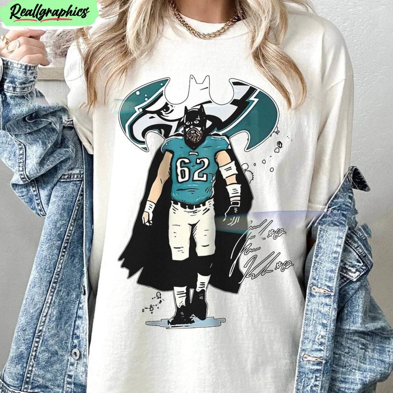 The Jason Kelce Batman Heroes Shirt is a must-have for all American football enthusiasts. This shirt celebrates the iconic Batman and the heroes of the sport, making it a perfect combination of two fan-favorite interests. The shirt’s design showcases the timeless appeal of Batman, capturing his heroic persona and unique style. Made for both men and women, this unisex shirt is perfect for football fans who appreciate the iconic symbols and characters of the sport. With its high-quality material and comfortable fit, wearing this shirt will not only show your support for the sport but also your admiration for the legendary Batman and the heroes of American football.