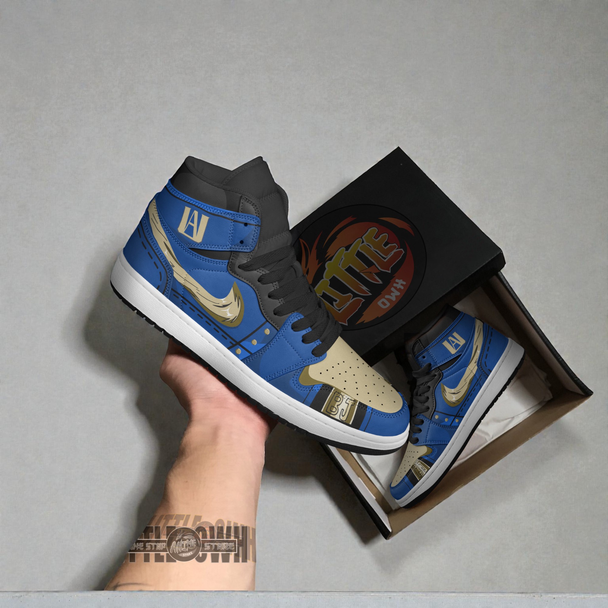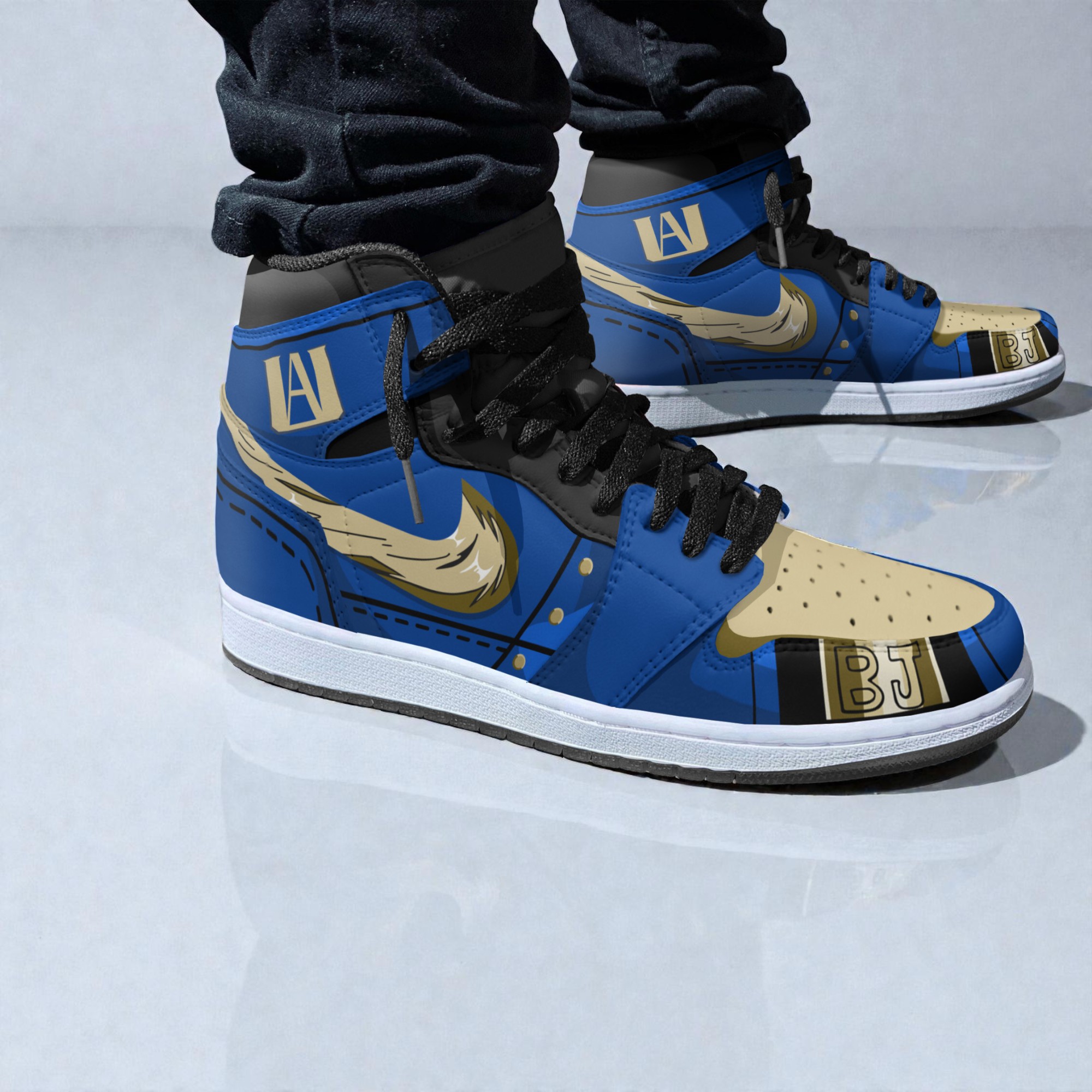 Electric blue streaks flash across the leather, slicing through muted beige and deep black panels like bolts of energy straight out of a battle scene. Lightning bolt motifs ripple along the sides, their sharp angles echoing the chaos and intensity found within the world of My Hero Academia. These aren’t just sneakers; they’re a wearable tribute to the superhero spirit that pulses through the fandom. The subtle interplay of comic panel lines gives the shoes a textured dynamism, as if the wearer carries a page of action frozen in time beneath their feet. Minimalist emblem logos sit near the heel, blending a sense of understated cool with nods to iconic character visuals. For those who live for the adrenaline of conventions or want a bold statement for everyday wear, these sneakers express a fearless individuality that transcends the ordinary. Fans who appreciate the melding of athletic design with anime culture will find these particularly compelling. They capture the tension between powered-up heroics and street-ready style—perfect for collectors who see their shoes as more than just footwear but as extensions of their identity. Gifting them feels like offering a physical connection to a shared passion, something that speaks louder than words at cosplay meetups or casual hangouts. Tsunagu Shoes My Hero Academia Jordan inspired models tap into the heartbeat of the community, bringing a vivid slice of heroism to life with every step.