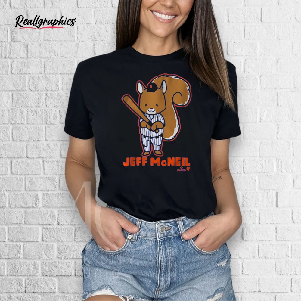 Show your support for your favorite second baseman with this fun tee! This comfortable shirt features a unique design honoring his famous nickname. Perfect for game day or everyday wear. Grab yours now and let everyone know you're a true fan! Jeff McNeil Squirrel Shirt