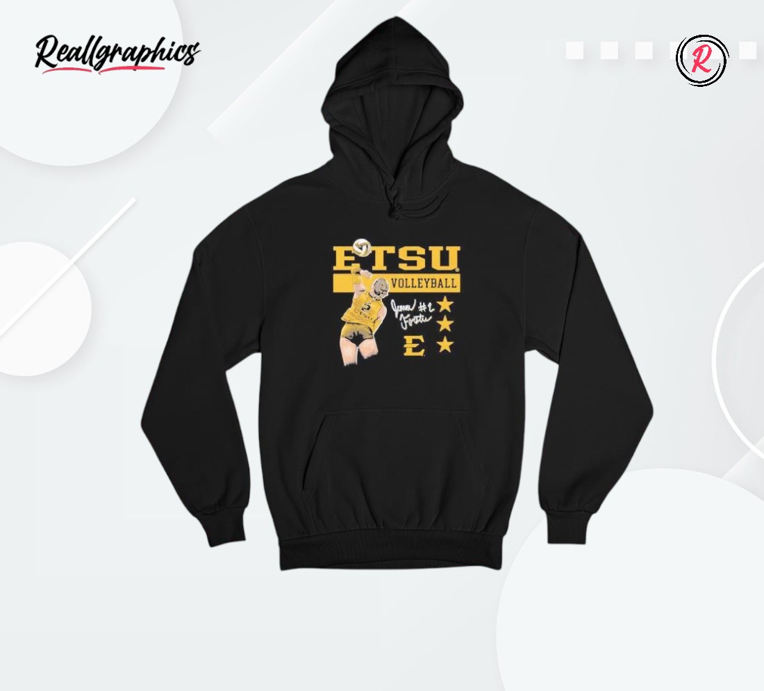 Show your support for ETSU Women's Volleyball with this unique signature cartoon player shirt! Featuring a fun, spirited design, it's the perfect way to represent your favorite team and player. Get yours today and cheer on the Bucs in style!