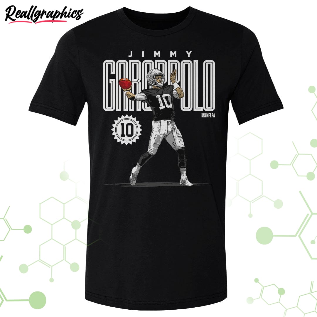 The Jimmy Garoppolo Las Vegas Card design merges the world of football and glitz, incorporating the excitement of both sports and the city into one stunning design. With a unique blend of colors and patterns that symbolize the energetic atmosphere of Las Vegas, this unisex T-shirt, hoodie, and sweatshirt captures the spirit of Jimmy Garoppolo's performance on and off the field. Made from high-quality materials, this apparel ensures maximum comfort and durability for everyday wear. Show off your love for football and the electrifying vibe of Las Vegas with this one-of-a-kind design that is sure to turn heads wherever you go.