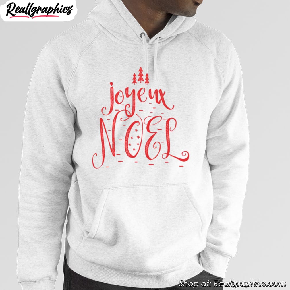 Joyeux Noel Vintage Christmas Red Pine Trees amp Text Premium Shirt details