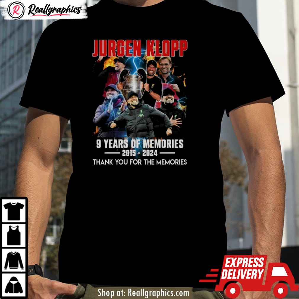 Jurgen Klopp 9 Years Of Memories 2015-2024 Thank You For The Memories Shirt details