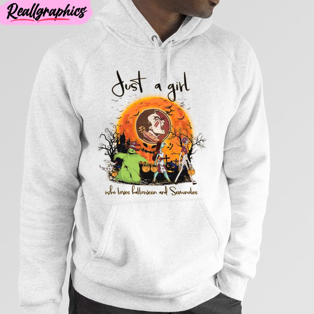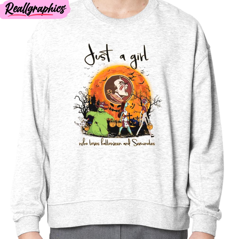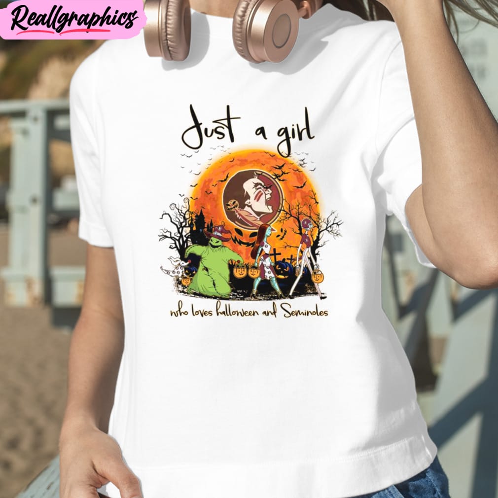 Just A Girl Who Loves Halloween And Florida State Seminoles Unisex T-Shirt, Hoodie, Sweatshirt details