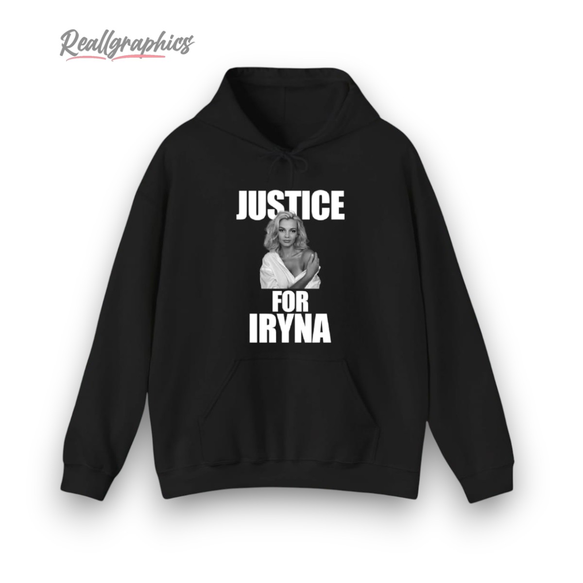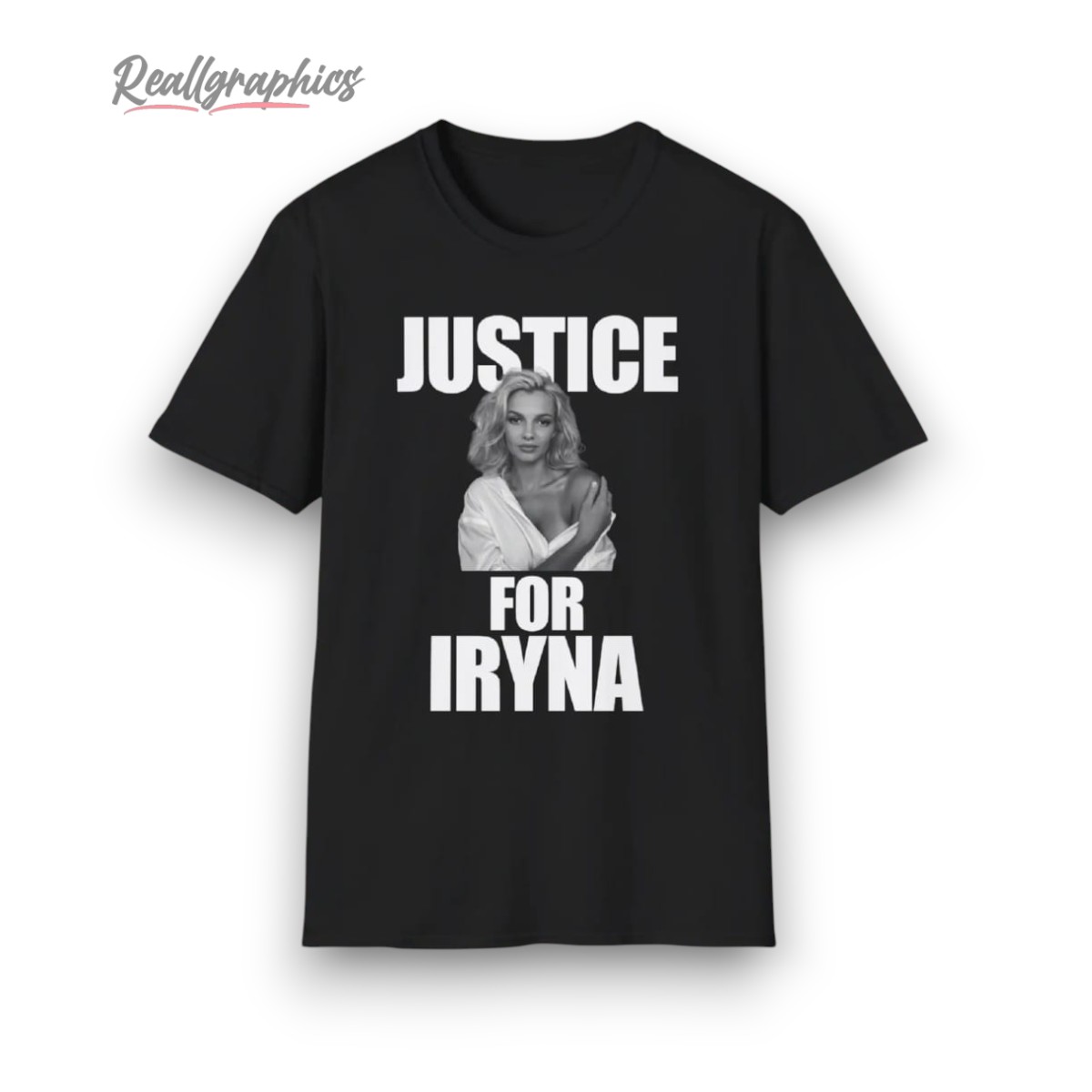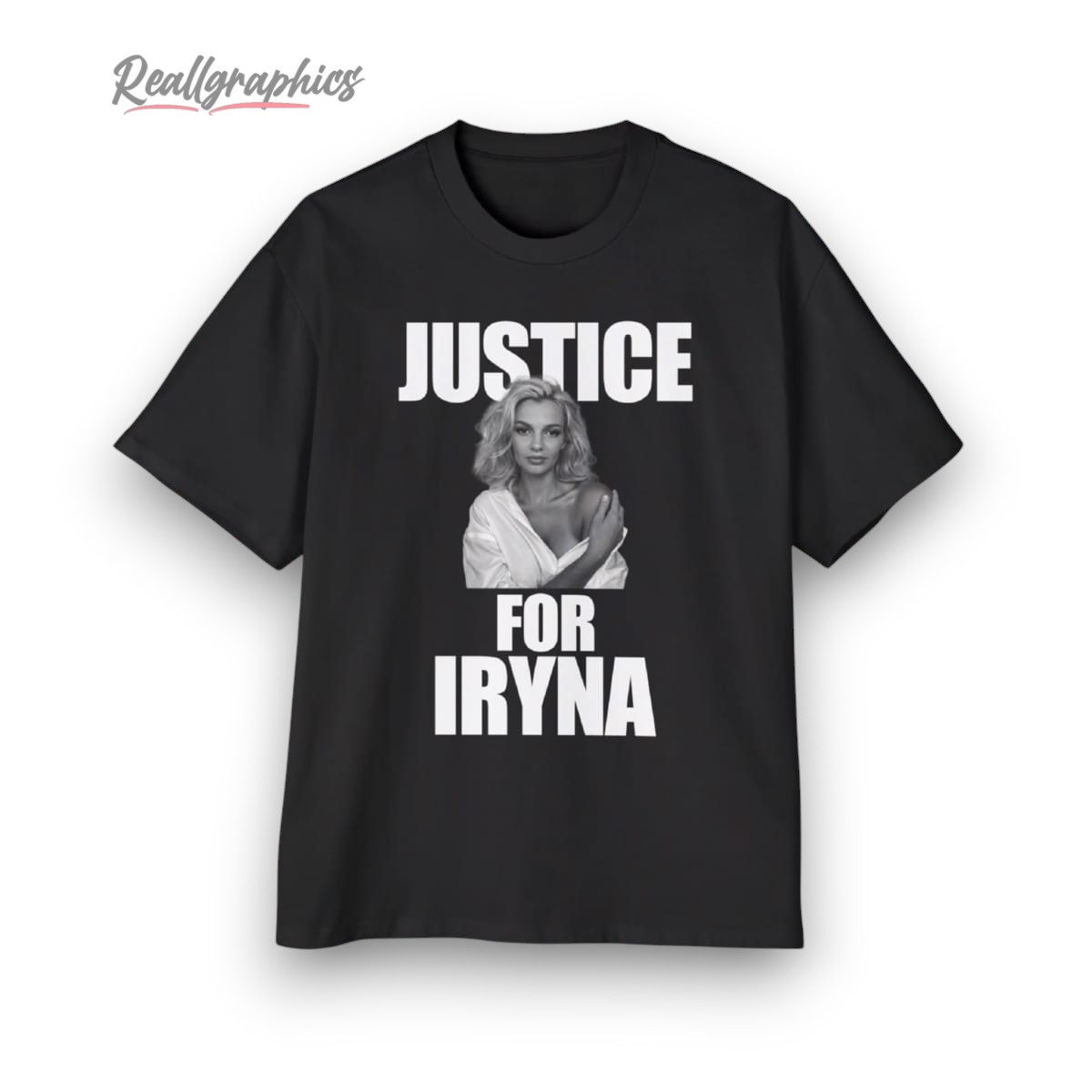 Demand change with this striking design, featuring bold text and a powerful image of Iryna. The monochrome design makes a strong statement, highlighting your commitment to justice. Make your voice heard and add a meaningful piece to your wardrobe.