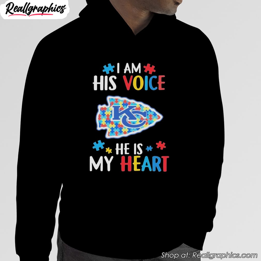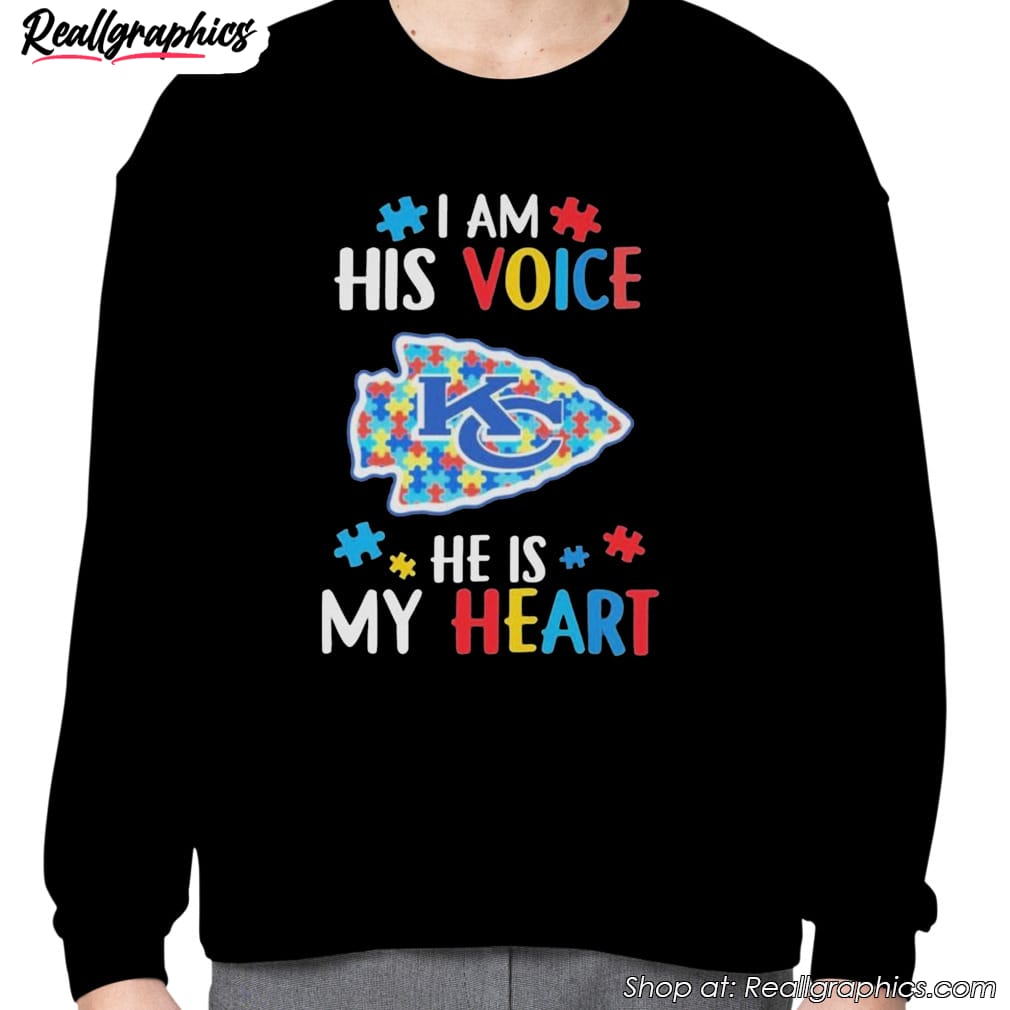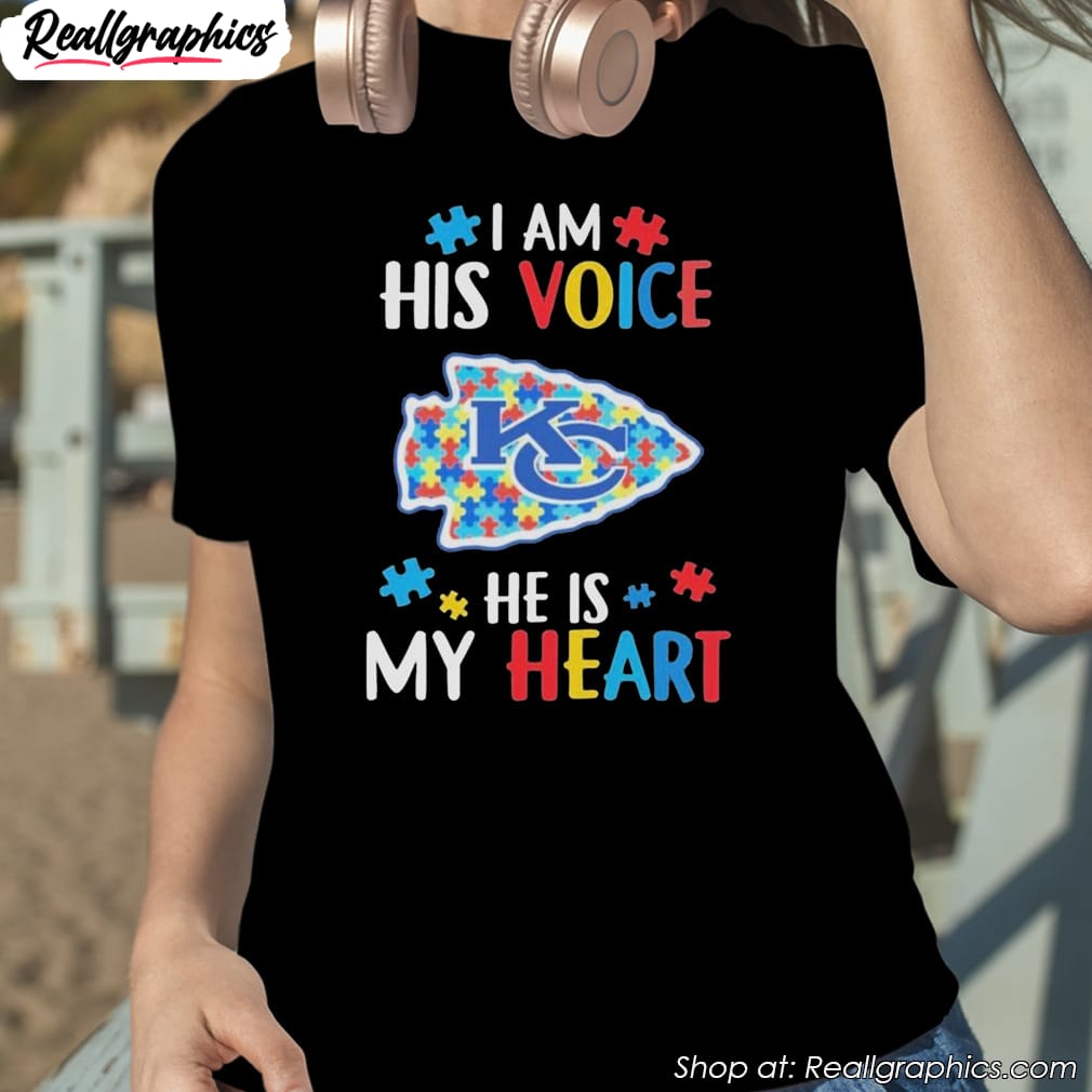 Kansas City Chiefs Autism Awareness I Am His Voice He Is My Heart 2023 Shirt details
