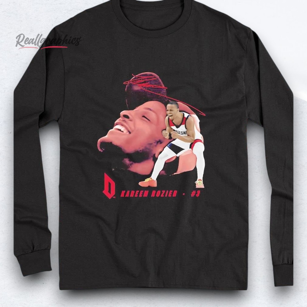 Rep your Dukes pride with this unique picture collage signature shirt! Featuring an awesome design that celebrates Kareem Rozier and Duquesne basketball. Get yours today and show your support! Limited quantities available.