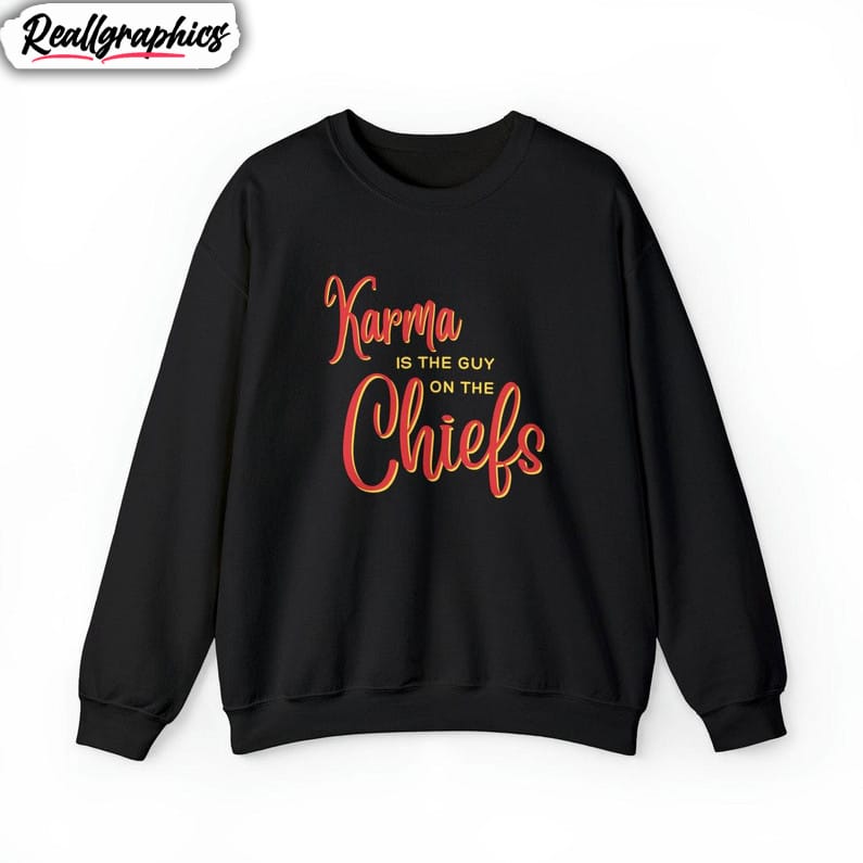 Karma Chiefs Shirt Karma Is The Guy On The Chiefs Tee Tops Crewneck Sweatshirt details