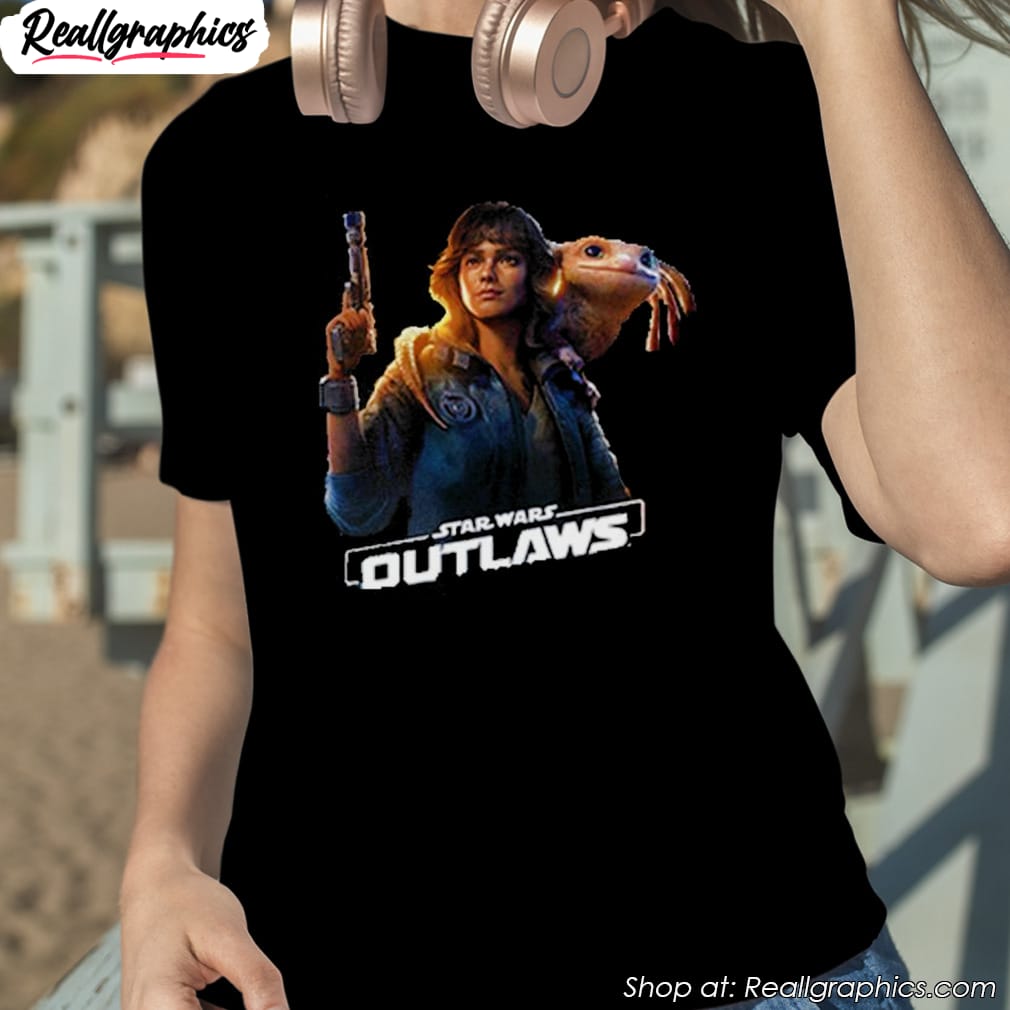 The Kay Vess Star Wars Outlaws TShirt is a trendy and fashionable t-shirt that combines the iconic Star Wars franchise with a rebellious and outlaw theme. The shirt features a unique design with the words Outlaws boldly printed on the front, along with various characters from the Star Wars series. The t-shirt is made from high-quality materials, ensuring comfort and durability. It is available in a range of sizes to cater to different preferences and body types. Perfect for Star Wars fans who love to showcase their love for the franchise in a stylish and edgy manner, the Kay Vess Star Wars Outlaws TShirt is a must-have for any fan’s wardrobe.