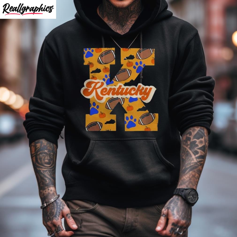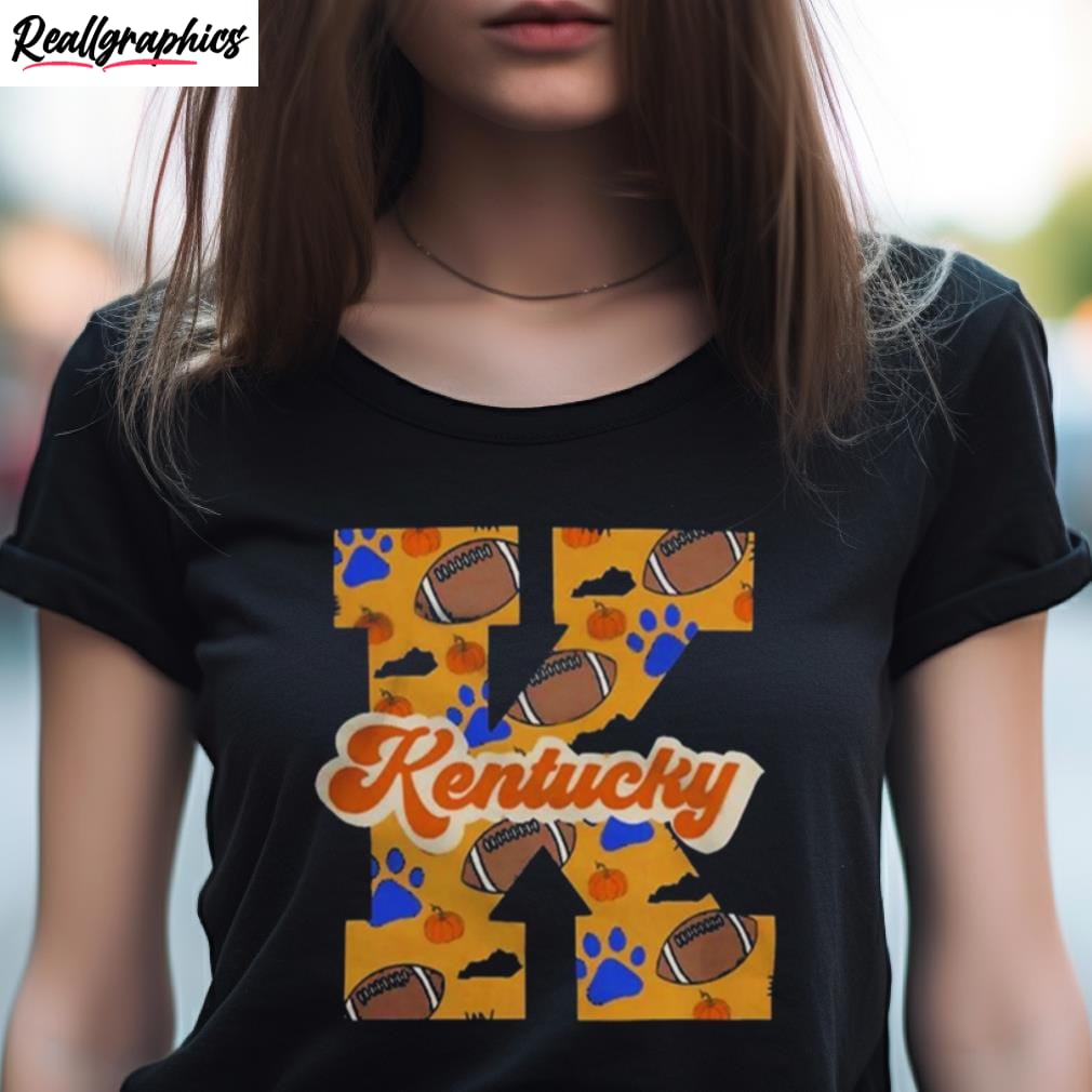 The Kentucky Fall Football Varsity K Shirt is the epitome of style and support for the team. This shirt allows fans to proudly display their allegiance to the Kentucky varsity football team during the fall season. It features a bold K logo on the front, representing the team's iconic emblem. Made from high-quality materials, this shirt is both comfortable and durable, ensuring that it will last for seasons to come. Whether worn to a game or out and about, the Kentucky Fall Football Varsity K Shirt is a must-have for any dedicated fan.