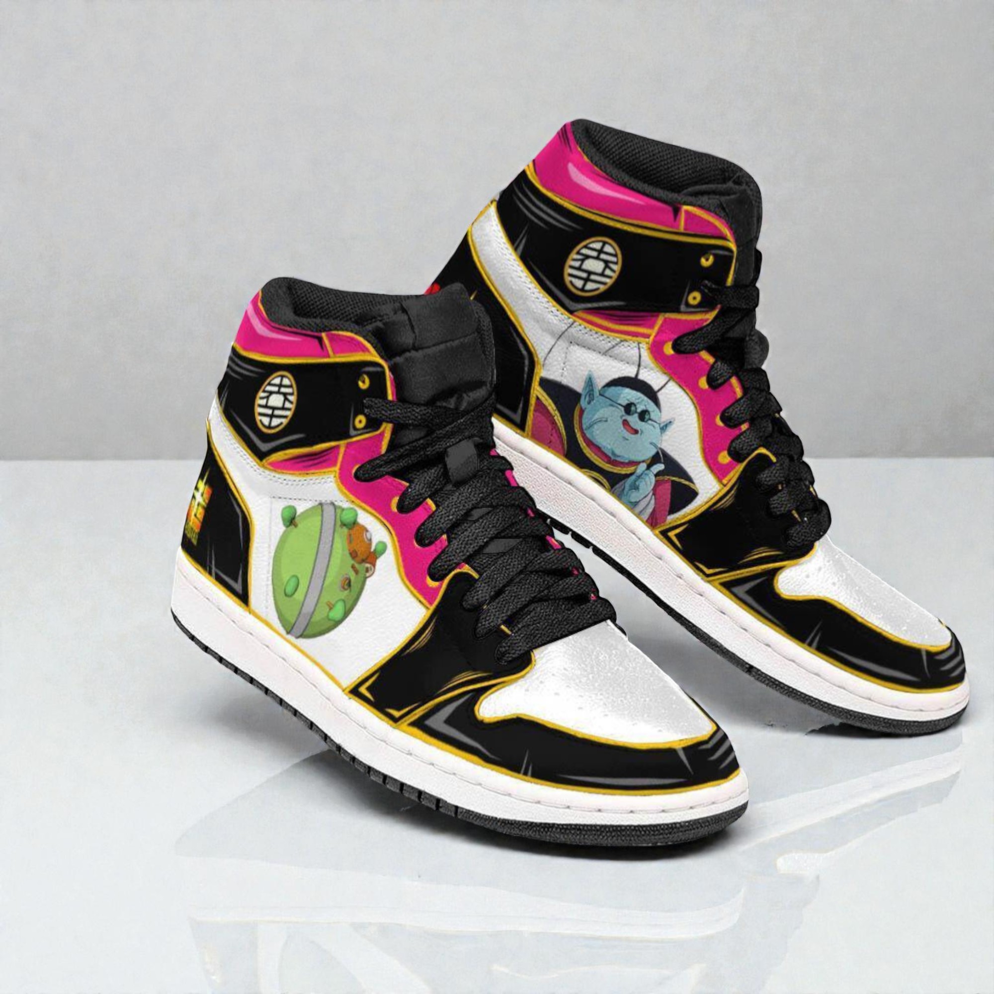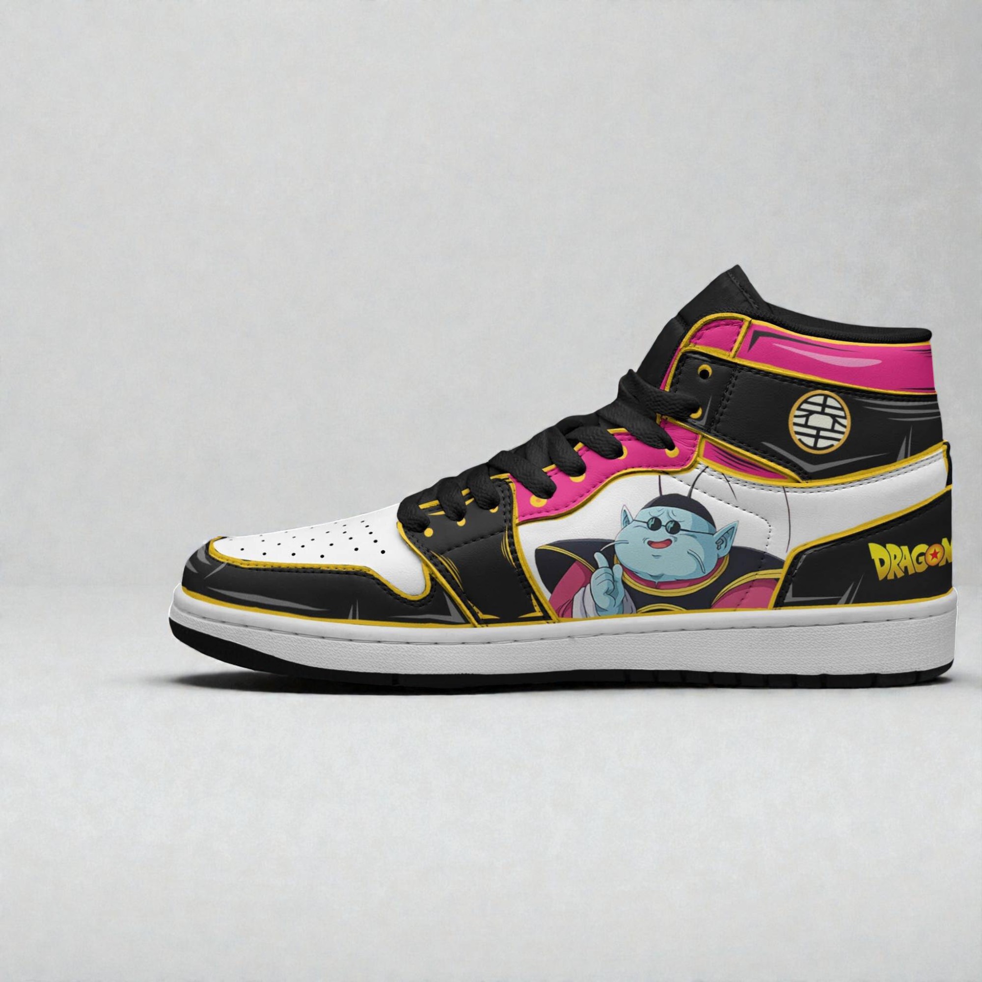 if you’re into Dragon Ball at all, these King Kai Boot Sneakers are honestly something special. They’ve got this bright white base that really makes the colors pop—think black, pink, and yellow accents that feel lively but not over the top. The high-top silhouette gives off a bold vibe without looking like you’re trying too hard. Plus, the little cartoon graphic of King Kai himself is a fun touch that any fan will immediately recognize. It’s like a playful nod to the series without screaming “anime shoes” in a cheesy way. What’s cool is the minimal branding, so it doesn’t feel cluttered. The tiny Dragon Ball logo fits right in and adds just enough detail for collectors or anyone who wants to keep it subtle but still true to the theme. These definitely stand out more as a casual, everyday sneaker rather than something just for cosplay or conventions, though they’d be an awesome pick for those too. I feel like these would be a great pick if you know someone who’s been into Dragon Ball since they were kids or if you’re into collecting sneakers that have a bit of character and story. Teens or anyone who’s had a thing for the series would probably love rocking these, whether it’s just around town or at a fan event. They’re fun, colorful, and kind of heroic in their vibe — definitely something different from the usual sneaker options out there. If you’re looking to switch up your rotation or find a unique gift for a Dragon Ball enthusiast, these sneakers are worth checking out.