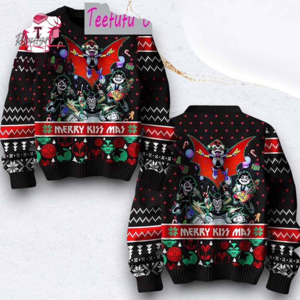 Rock around the Christmas tree in this devilishly festive sweater! Perfect for KISSmas parties or cozy nights by the fire. Show off your rock 'n' roll holiday spirit with this unique and unforgettable design. Get ready to celebrate with a bang! Limited quantities available, grab yours before they're gone! 🤘