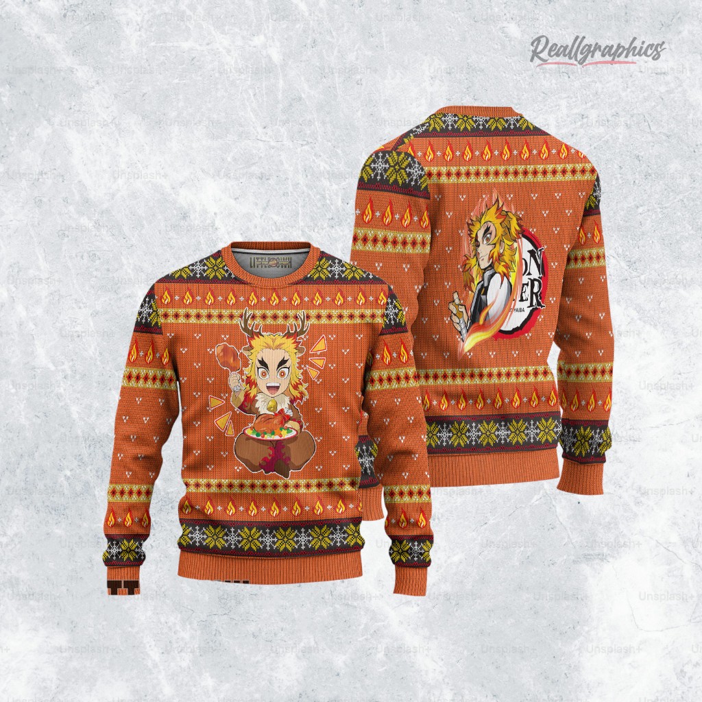 Ho ho ho! 🔥 Slay the holidays with Kyojuro Rengoku! This festive Demon Slayer sweater is perfect for spreading Christmas cheer and showing off your love for the Flame Hashira. Get yours now and ignite the spirit of the season! 🎄