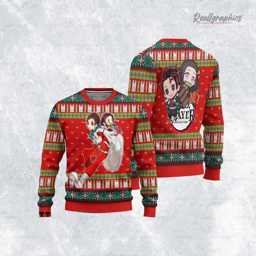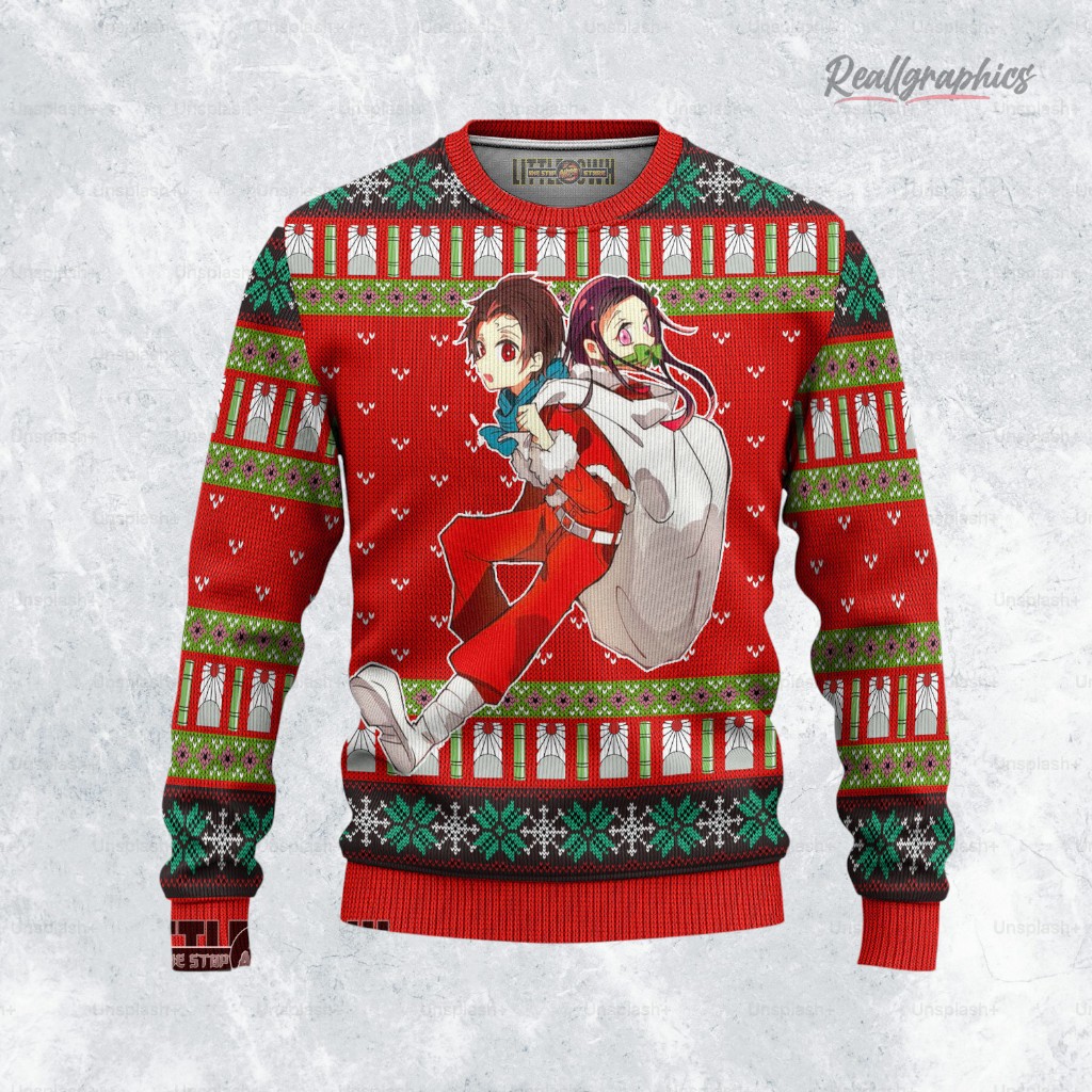 Wearing this Demon Slayer Christmas sweater, feel the magic as Tanjiro and Nezuko bring festive cheer to your holiday season! These beloved characters pop against a backdrop of traditional holiday patterns, making it a joyful addition to any fan's wardrobe. Whether you're relaxing by the fire or at a holiday party, this sweater will keep those Demon Slayer vibes strong. Ready to make a statement this holiday? Get yours now!