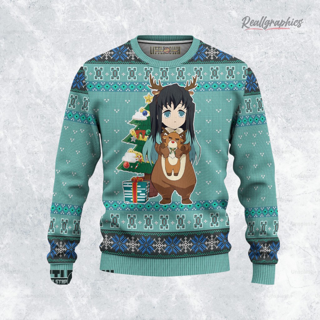 Is your holiday season missing a touch of anime magic? This KnY Muichiro Ugly Christmas Sweater captures the whimsy and wonder of both Christmas and Demon Slayer. Featuring Muichiro adorably dressed as a reindeer, ready to bring festive cheer alongside a colorful Christmas tree, it’s perfect for anime fans looking to spread holiday joy. Embrace the spirit of the season in style—grab yours today!KnY Muichiro Ugly Christmas Sweater Demon Slayer Custom Anime Sweatshirt