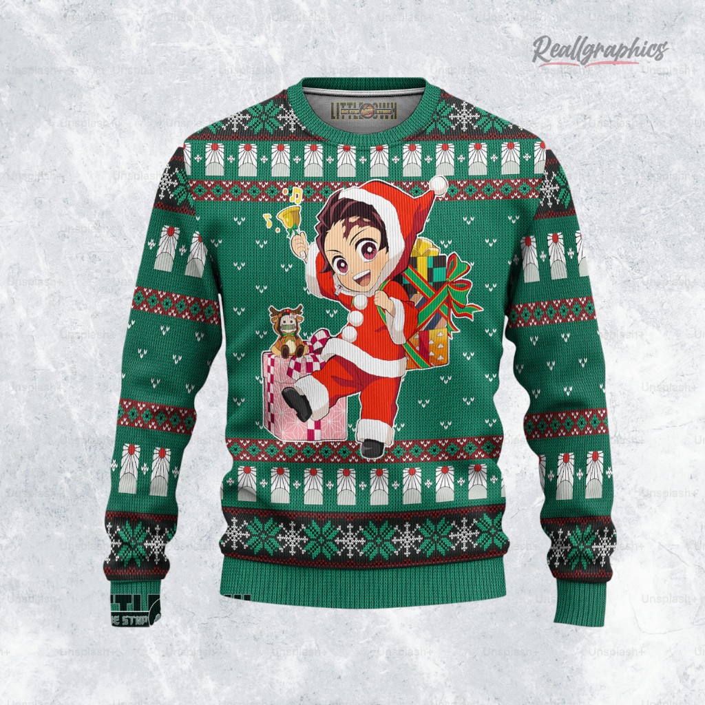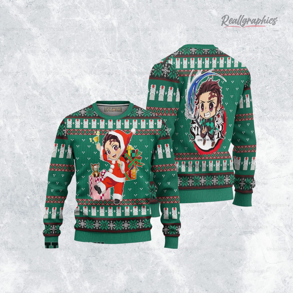 Let's talk about a holiday twist on your favorite anime! This KnY Tanjiro Ugly Christmas Sweater marries the festive spirit with the adventurous world of Demon Slayer. Picture Tanjiro, dressed as an adorable Santa, ready to bring joy and slay holiday blues. It’s a playful design that’s perfect for fans looking to spread cheer. Ready to add some anime magic to your holiday wardrobe? Grab yours now!