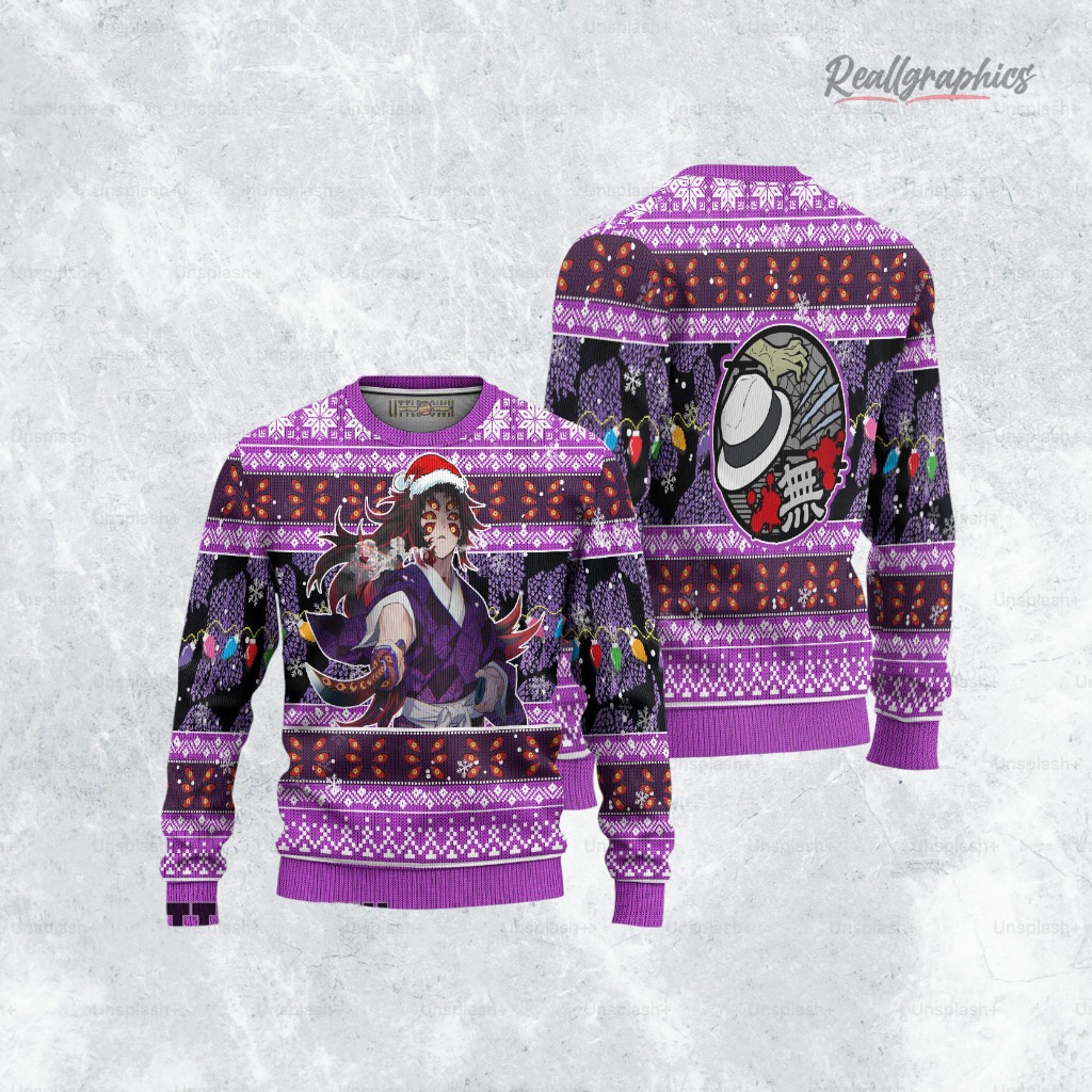 Surprise your friends with this unique twist on holiday cheer! Featuring Kokushibo from Demon Slayer in a festive Santa hat, this sweater blends anime magic with a playful Christmas vibe. The intricate design, set on a vibrant backdrop, captures the enchanting spirit of both worlds. Ready to stand out at your next holiday gathering? Grab yours and bring some anime flair to the festivities!
