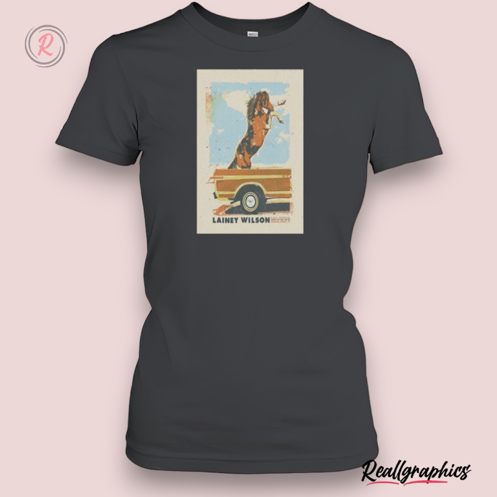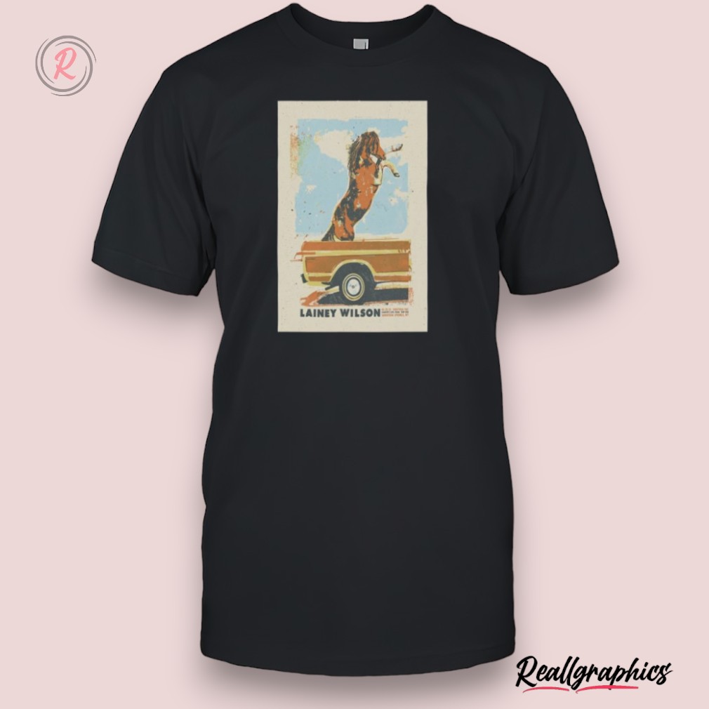 Get ready to rock out in style with the exclusive Lainey Wilson Tour poster shirt! Designed for true fans of country music sensation Lainey Wilson, this limited edition shirt features a unique design that captures the essence of her electrifying performances. Show your support and stand out from the crowd when you attend the highly anticipated concert in Saratoga Springs, NY on June 20, 2024. Don't miss your chance to grab this must-have collector's item – it's sure to become a prized possession for any die-hard Lainey Wilson fan!