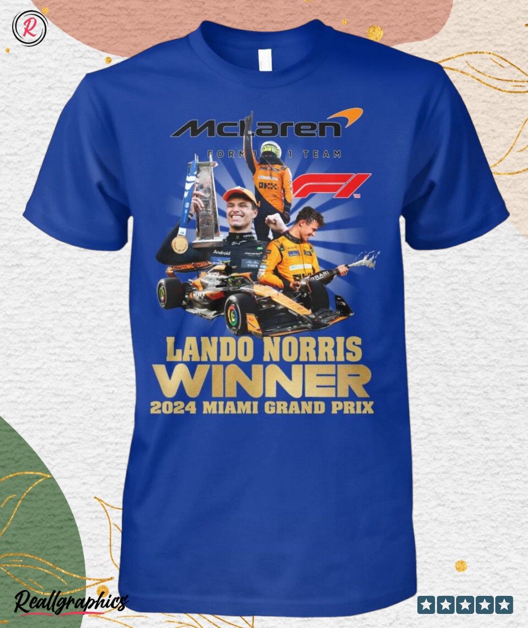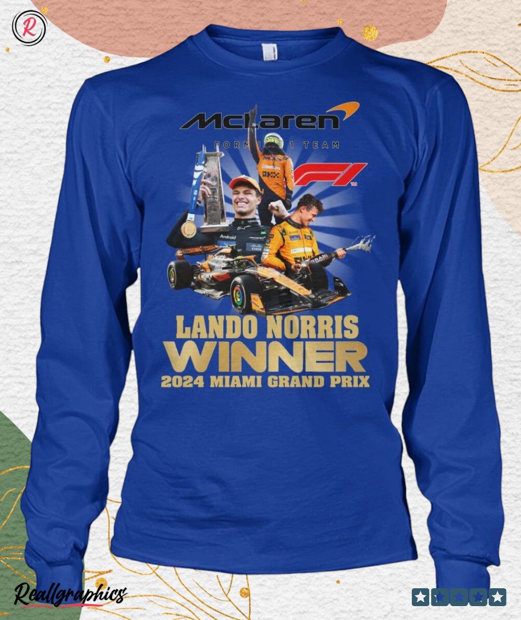 The Lando Norris Winner 2024 Miami Grand Prix Unisex Shirt celebrates the victory of British racing driver Lando Norris at the prestigious Miami Grand Prix. The shirt features a sleek and modern design, with Norris’ name and number prominently displayed. Made from high-quality materials, it offers both style and comfort. Perfect for any Formula 1 fan or collector, this shirt is a must-have piece to commemorate a historic moment in motorsport history.