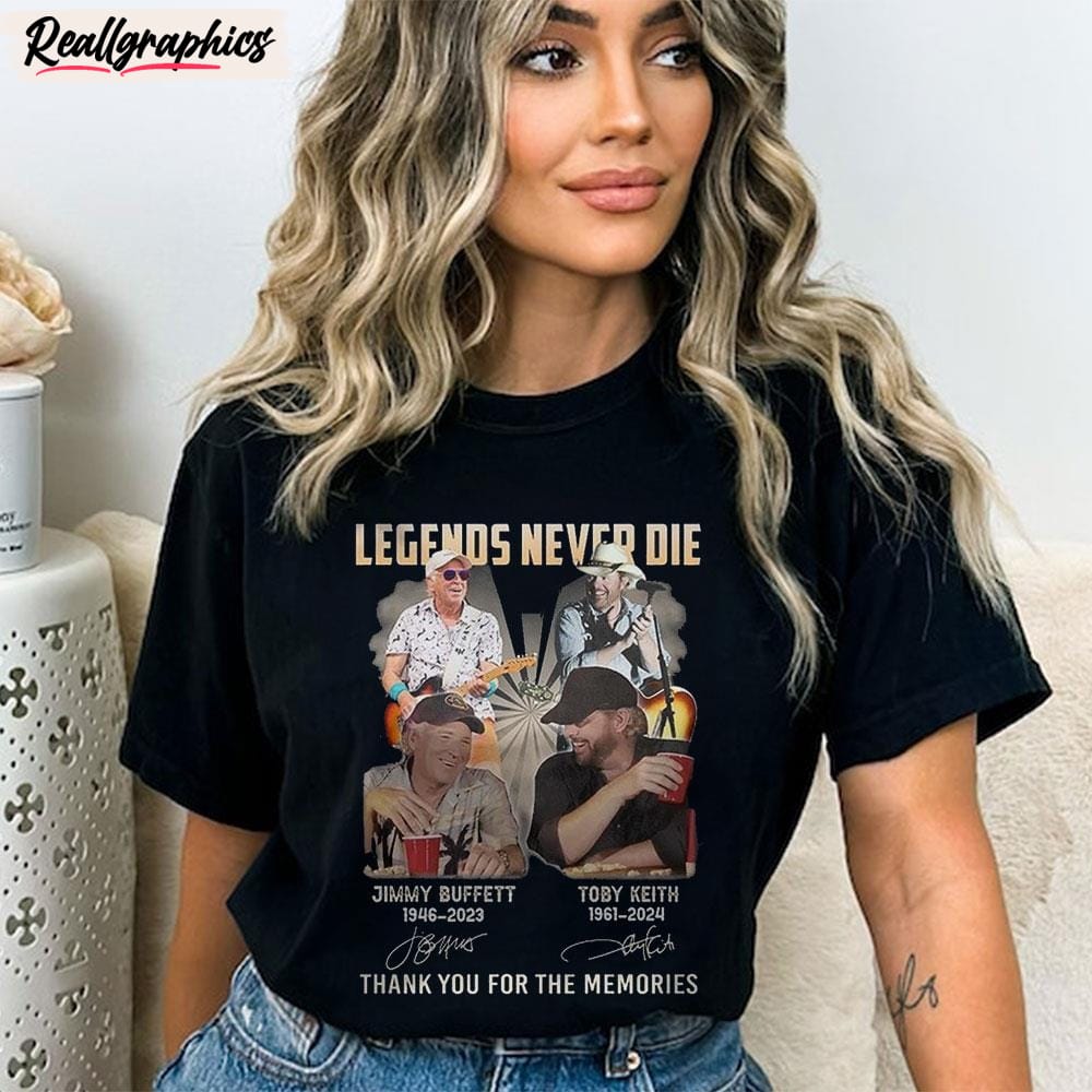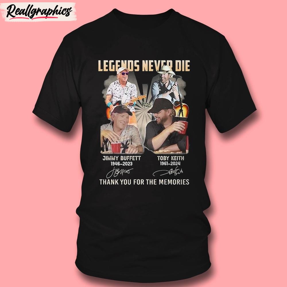 Legends Never Die Jimmy Buffett And Toby Keith Thank You For The Memories T-Unisex Shirt details