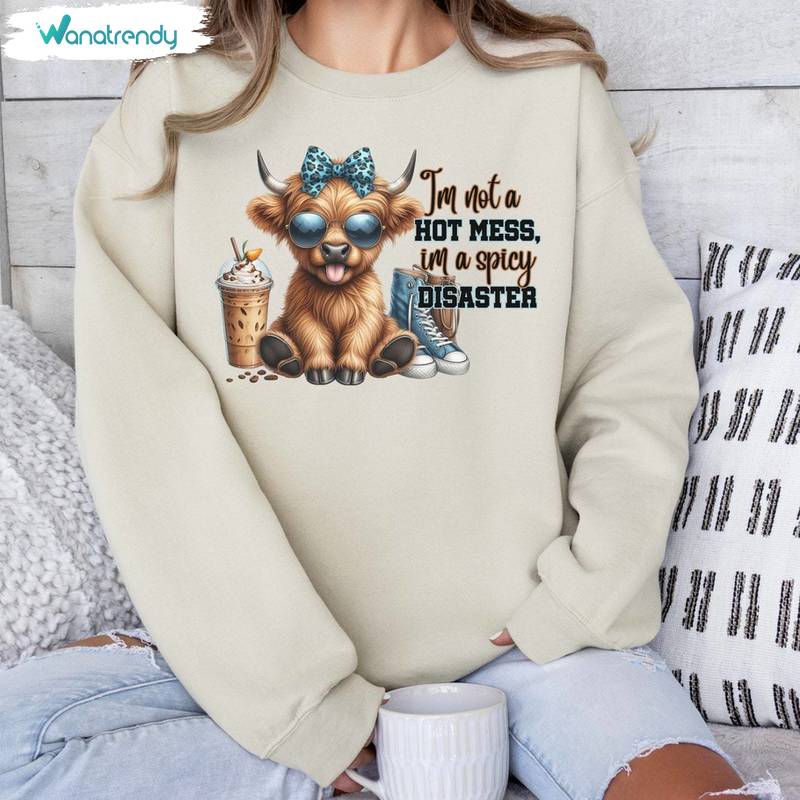 Leopard Bow Cute Cow Sweatshirt ,unique I'm Not A Hot Mess I'm A Spicy Disaster Unisex Hoodie, Sweatshirt details