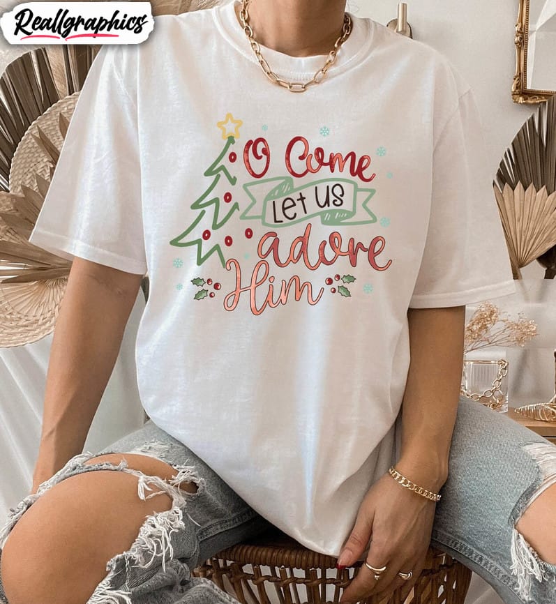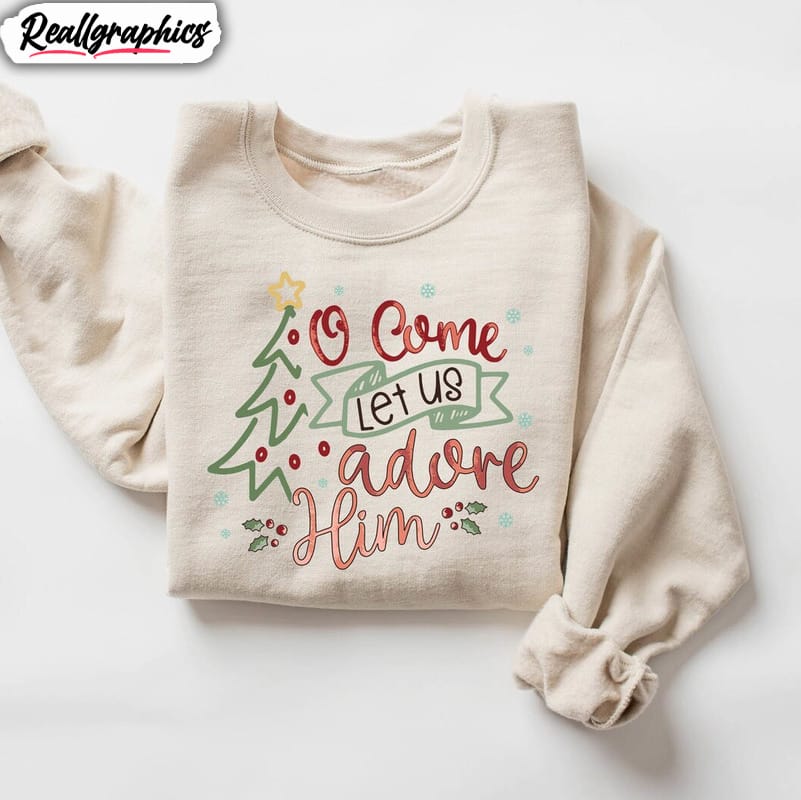 Let Us Adore Him Shirt Christian Christmas Unisex Hoodie Long Sleeve details