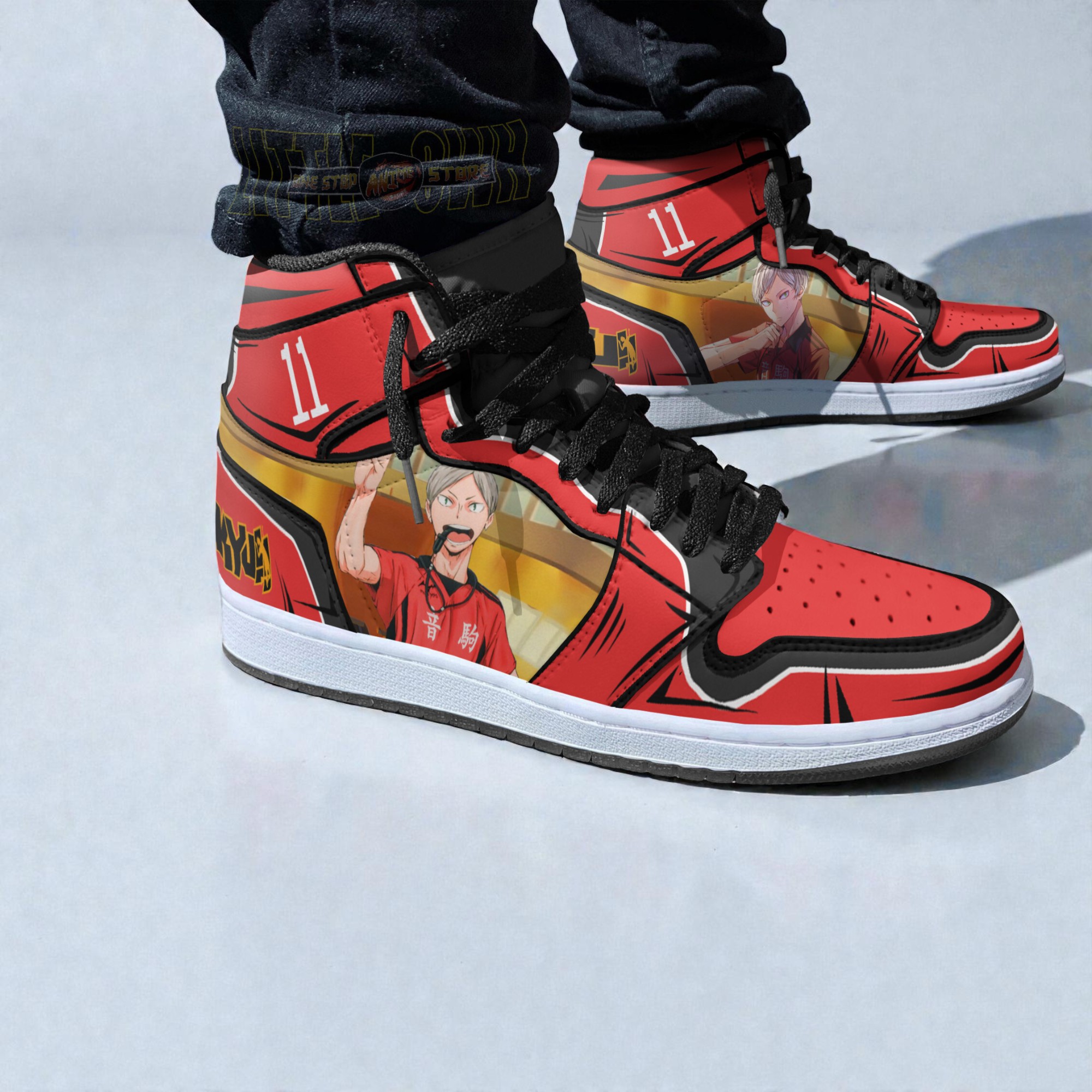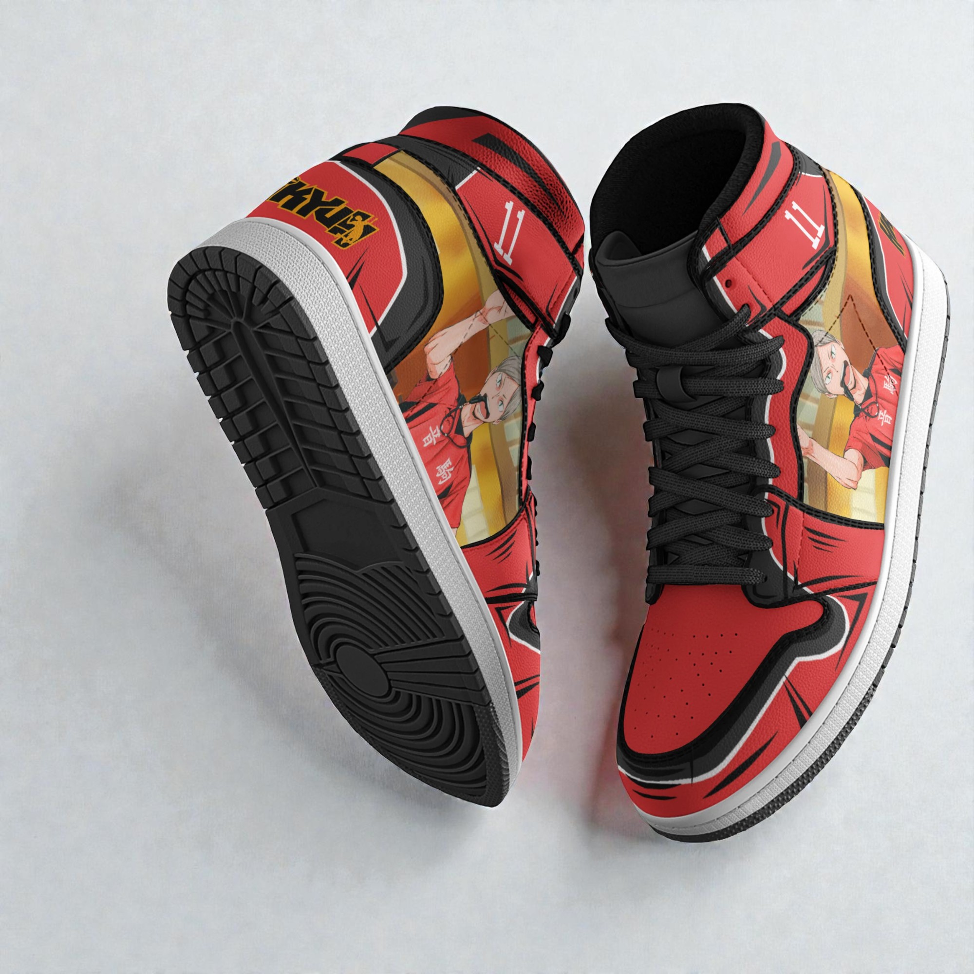 The sharp contrast of red, black, and gold slices through the energetic vibe of these sneaker boots, instantly calling to mind dynamic matches and the thrill of the court. Illustrated panels showcase iconic action poses that seem to leap off the shoes, inviting the intensity and passion of Haikyuu's Lev Haiba and the fierce spirit of Nekoma. The bold blocky numbers, especially the standout 11, slice through the design, alongside stylized Japanese characters that ground their identity firmly in the anime’s world. These are more than just footwear; they’re an extension of the bold, rebellious attitude that defines the fandom—perfect for anyone who understands the pulse of anime sports culture and its vibrant, kinetic energy. Whether caught up in the adrenaline of a convention, or simply channeling that essence through daily wear, these shoes hold a kind of storytelling power that resonates with collectors and fans alike. Any enthusiast drawn to Haikyuu and sneaker culture would recognize the layered meaning here—a way to carry fandom in a form that's both visually striking and deeply rooted in character passion. They make an apt gift for those who live and breathe the intensity of anime’s standout moments, reflecting a shared excitement that goes beyond simple fan merchandise. This intersection of style and fandom captures the spirit that keeps the community connected, step by step.Lev Haiba Nekoma High Haikyuu Jordan Sneaker Boots Custom Anime Shoes