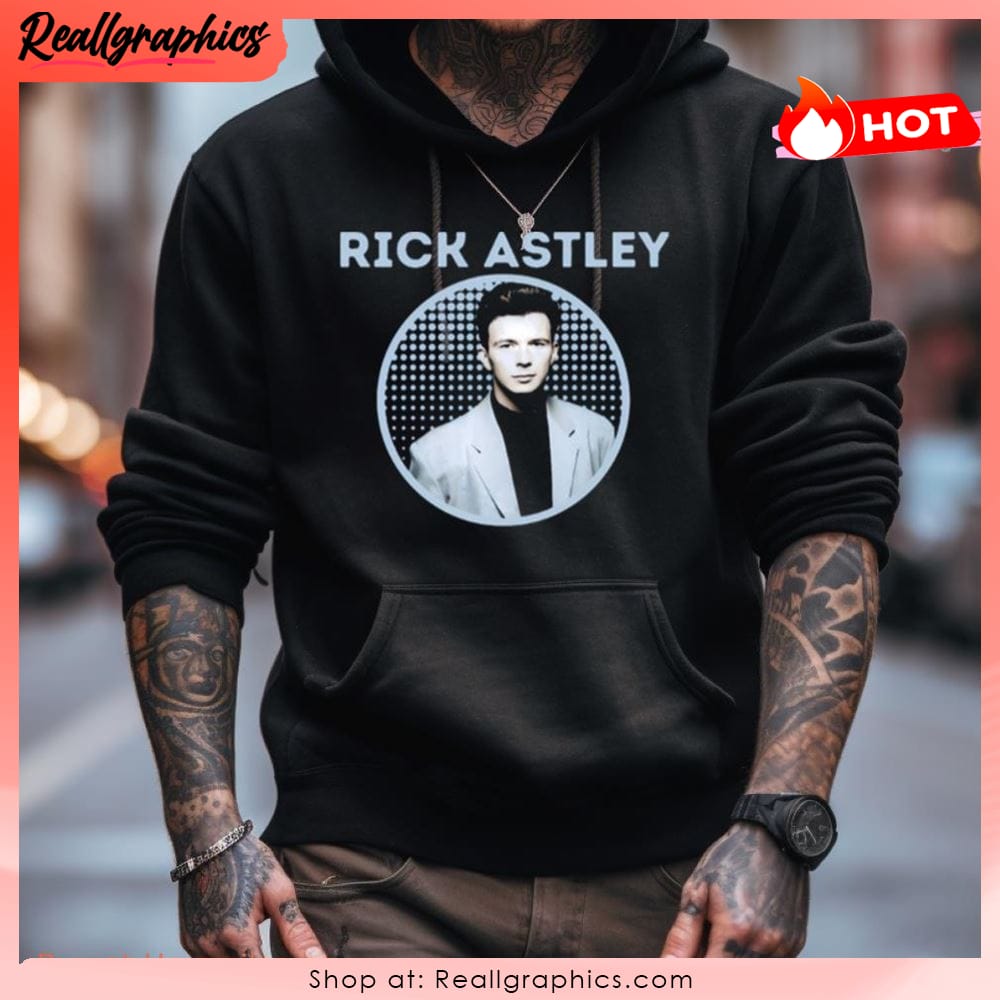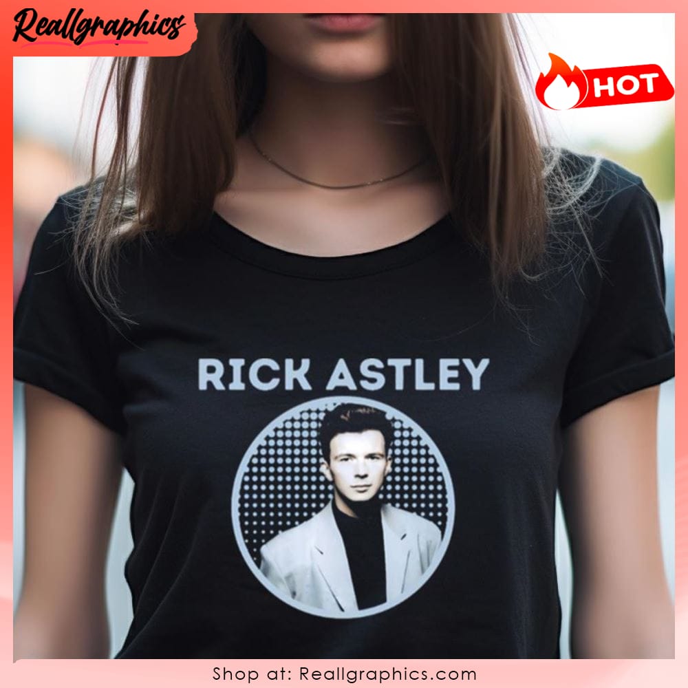 The Light Blue Rick Astley shirt is a nostalgic and playful piece of clothing with a vibrant color that will catch anyone’s attention. Designed with comfort in mind, this shirt is made from soft and breathable fabric, allowing you to move freely throughout the day. The shirt features a classic button-down style with a modern twist, making it suitable for both casual and semi-formal occasions. It showcases a unique pattern that includes small motifs inspired by the famous 1980s singer, Rick Astley, adding a touch of fun and individuality to your outfit. This shirt is a must-have for those who want to embrace their love for retro culture while staying stylish.