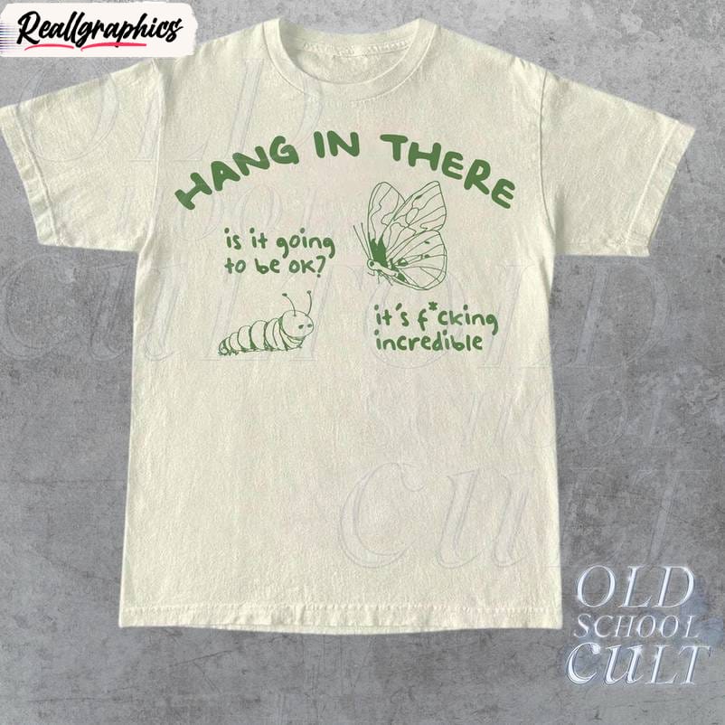 Limited Hang In There Sweatshirt , Caterpillar Butterfly Vintage T Shirt Short Sleeve details