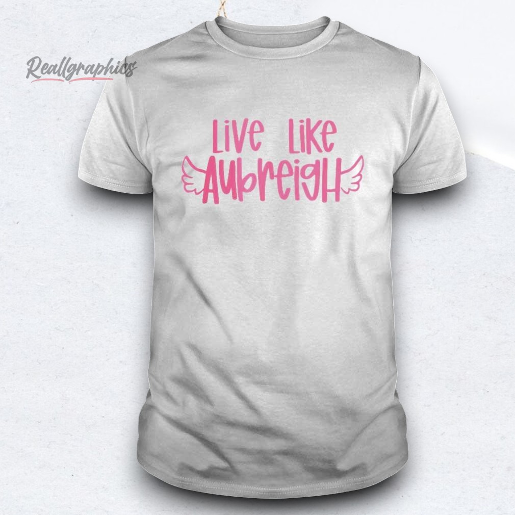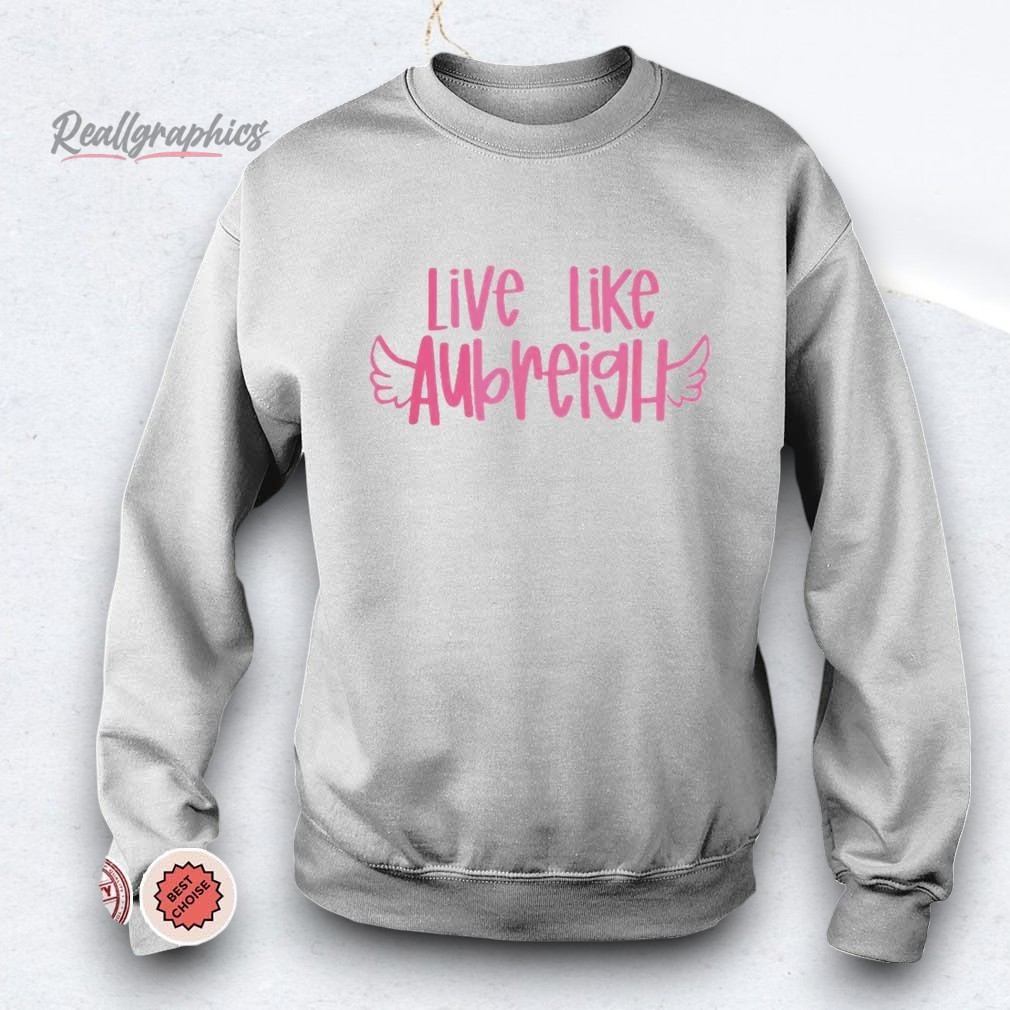 Inspired by Aubreigh's spirit! This shirt embodies joy, kindness, and unwavering strength. Wear it as a reminder to embrace every day with passion and spread positivity wherever you go. A comfy and stylish way to honor an incredible legacy. Live Like Aubreigh Wyatt Shirt