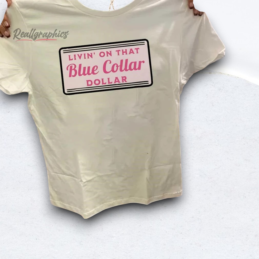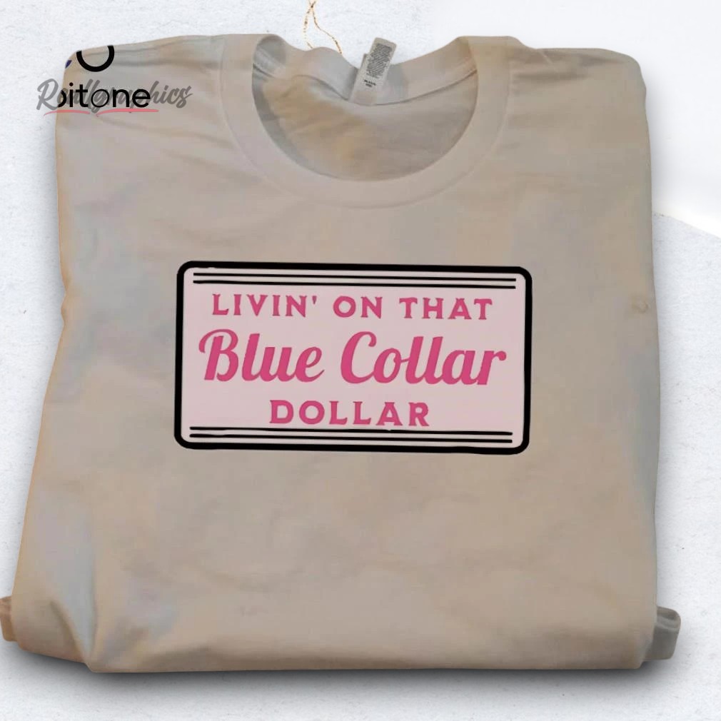 Show your pride for hard work and dedication! This comfortable and stylish tee embodies the spirit of the blue-collar life. Perfect for everyday wear, it's a subtle nod to those who build and create. Get yours today! Livin' On That Blue Collar Dollar Shirt