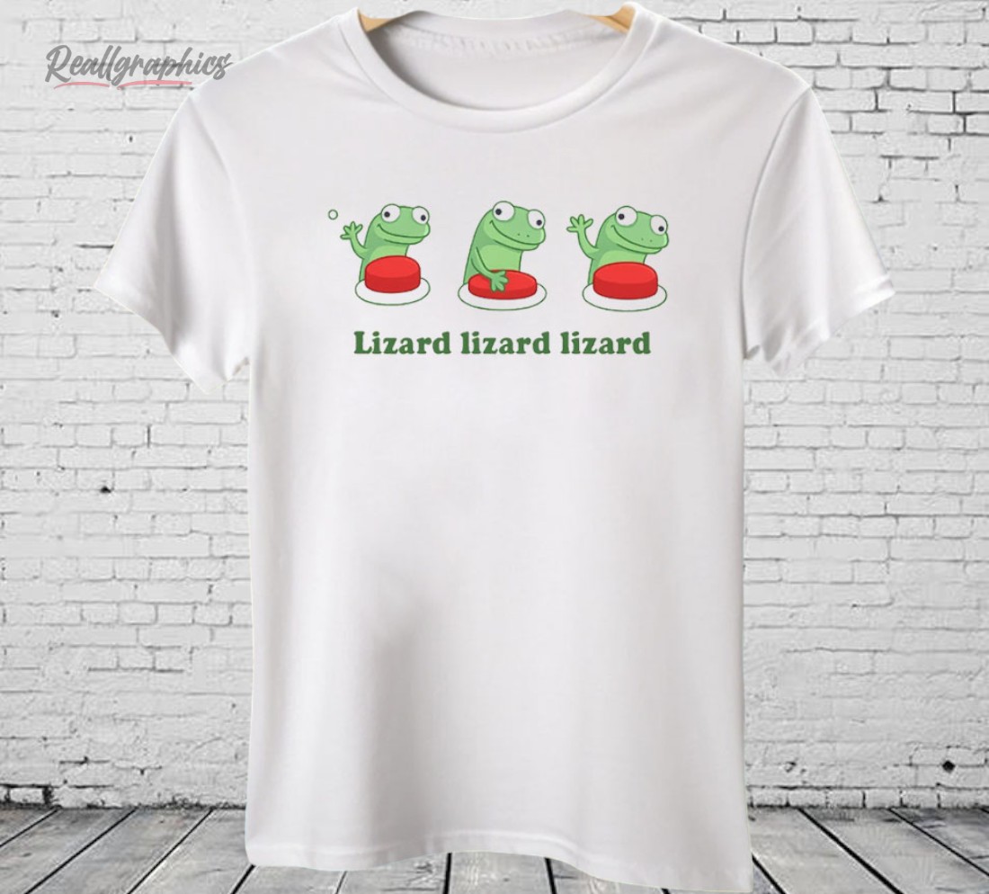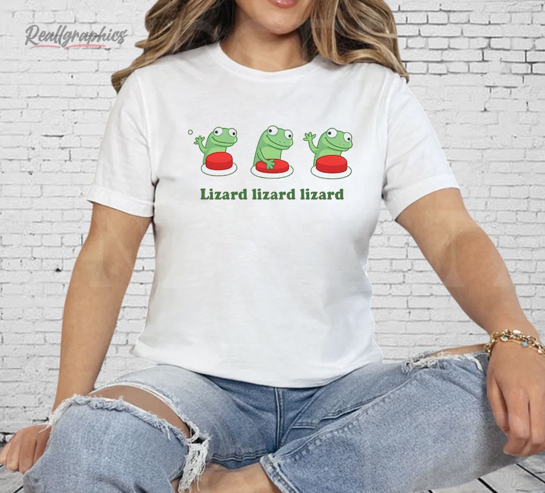 Obsessed with this new shirt! It's got a hilarious reptile design that's guaranteed to get laughs. Perfect for meme lovers and anyone who appreciates a good quirky graphic tee. Super comfy and a great conversation starter. Get yours today! Lizard Lizard Lizard Funny Meme Shirt