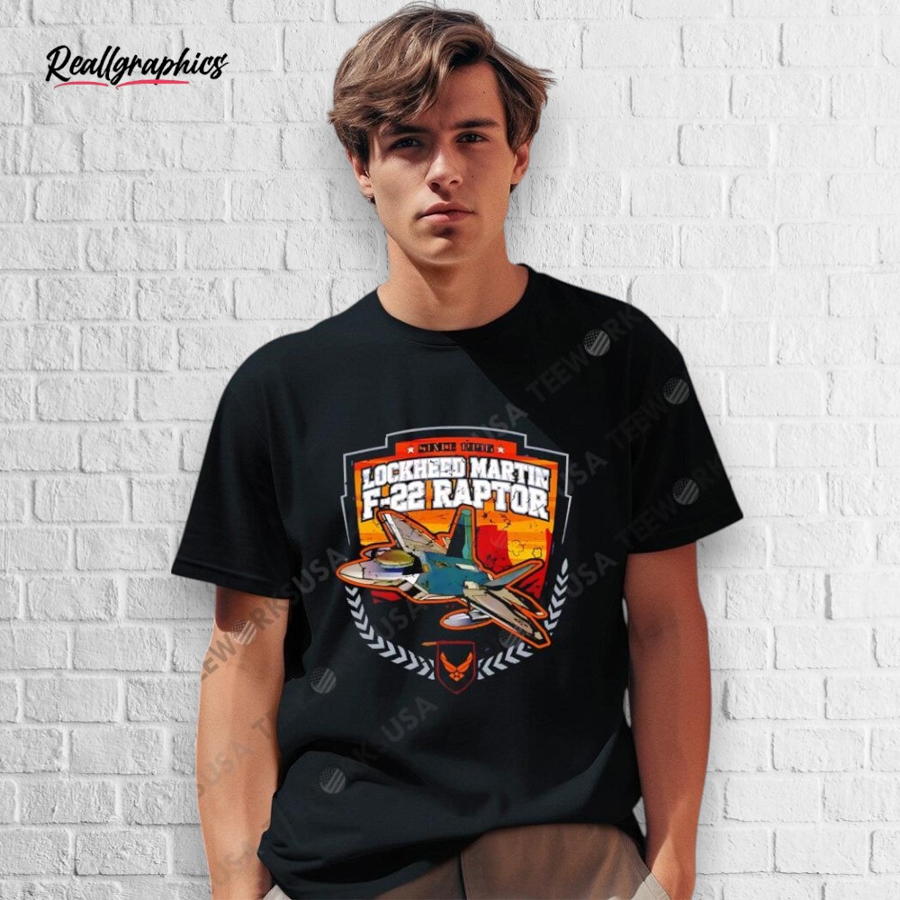 Own a piece of aviation history! This vintage-inspired tee celebrates a legendary fighter jet. Show your love for air power with this comfortable and stylish design. A must-have for aviation enthusiasts and history buffs alike. Get yours today! Lockheed Martin F 22 Raptor Retro Shirt