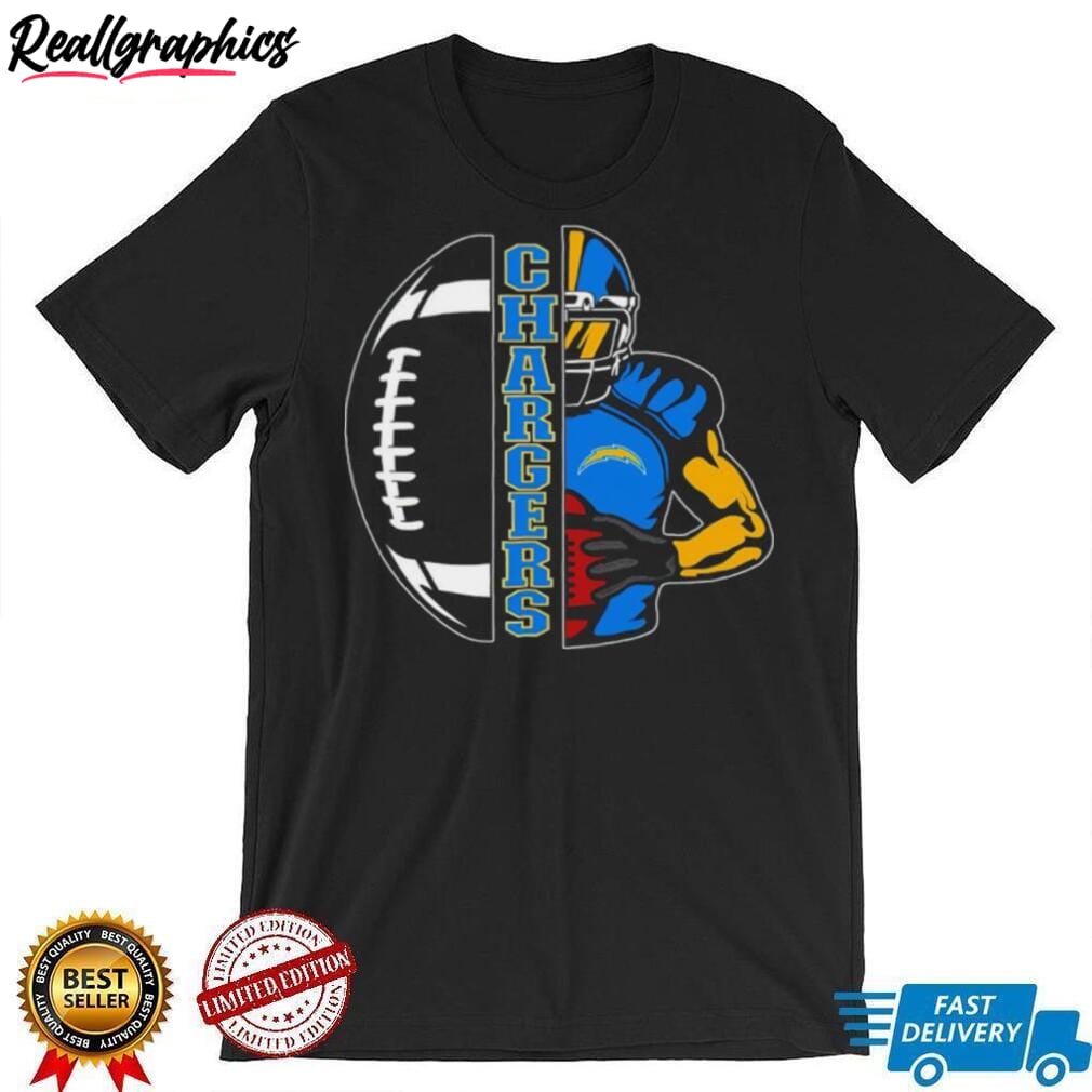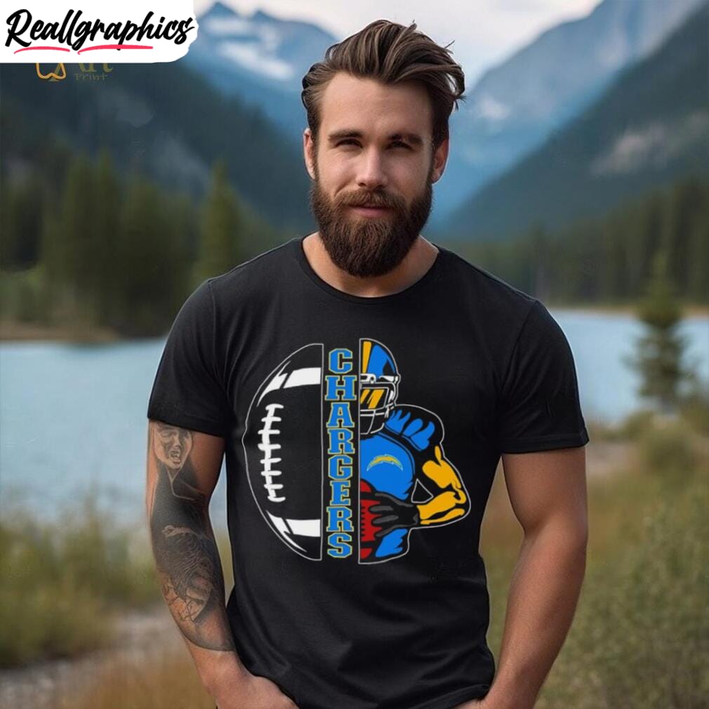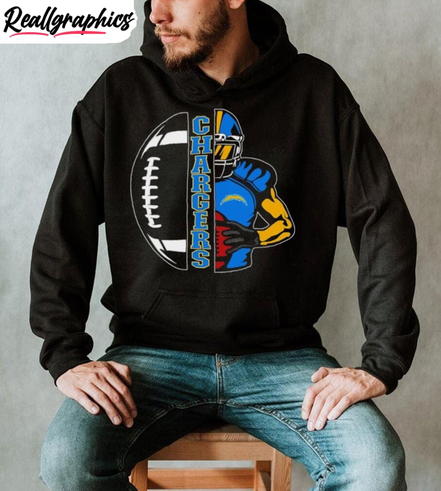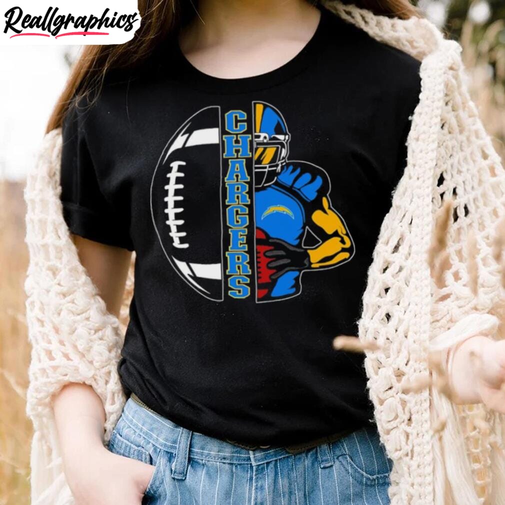 Enjoy a unique blend of fandom and creativity with this distinctive piece of clothing. Designed for the ultimate football fans, it exhibits exclusive artwork that celebrates the spirit of the much-loved Chargers. The striking colors resonate with the energy of Los Angeles while the subtle references to football make it the perfect attire for game nights. Meticulously crafted, it promises to offer maximum comfort without compromising on style. This is more than just a shirt; it’s a beacon of support for the Chargers, making it an essential addition to every fan’s collection. Spark conversations at every gathering as you proudly sport this artistic tribute to your favorite team.