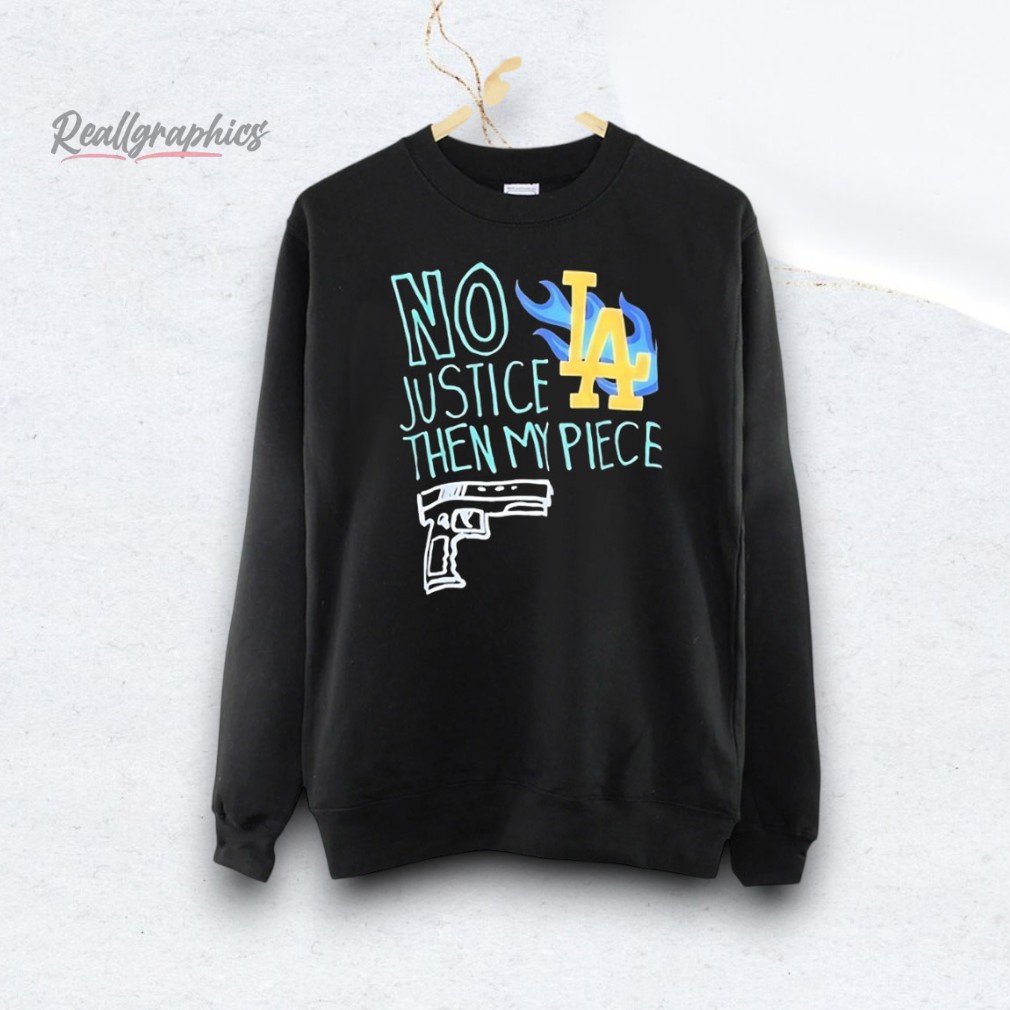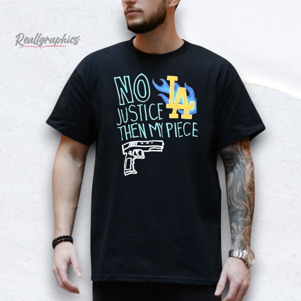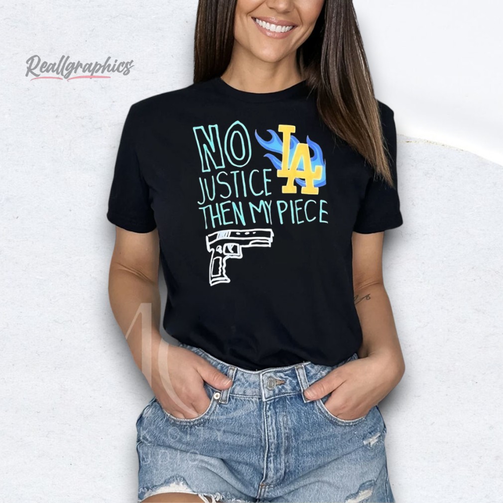 Stand up for what you believe in. This powerful shirt speaks volumes without saying a word. Show your support and make a statement. Available now – grab yours and join the movement! Los Angeles no justice then my piece gun Shirt