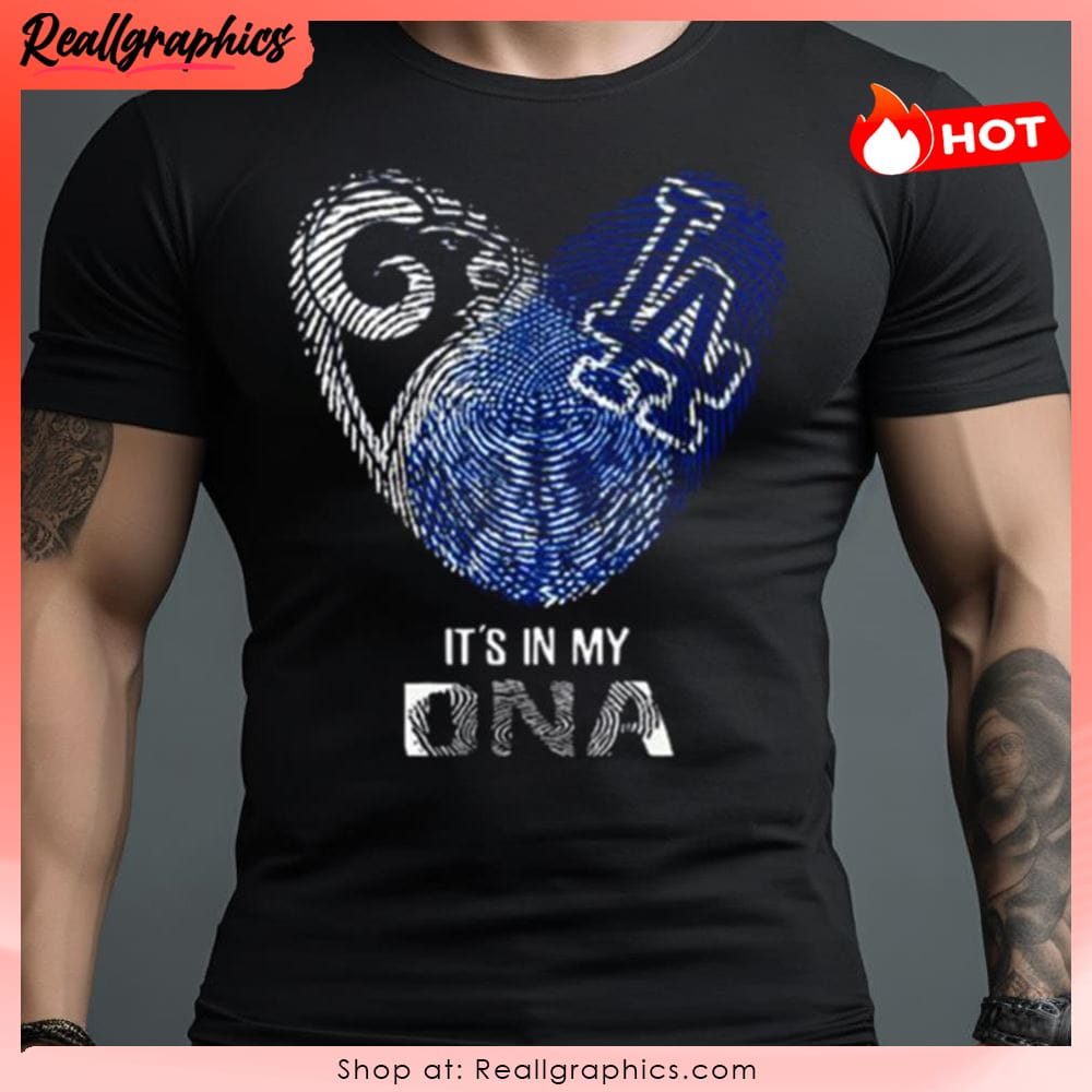 Los Angeles Rams And Los Angeles Dodgers Heart It's In My Dna 2023 Shirt details