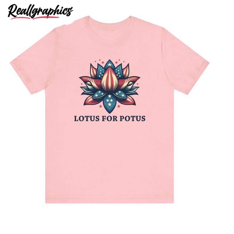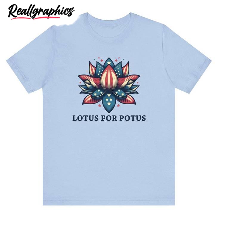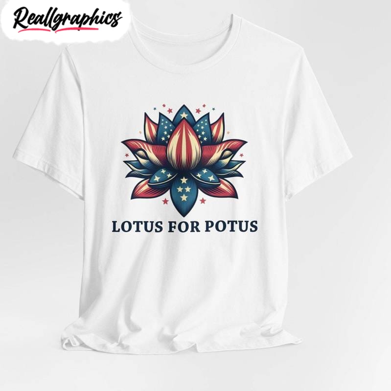 Lotus For Potus USA Flag Shirt, Women's Rights Short Sleeve Crewneck details