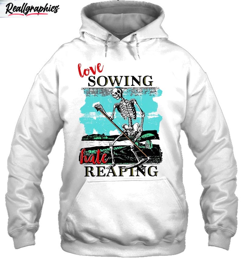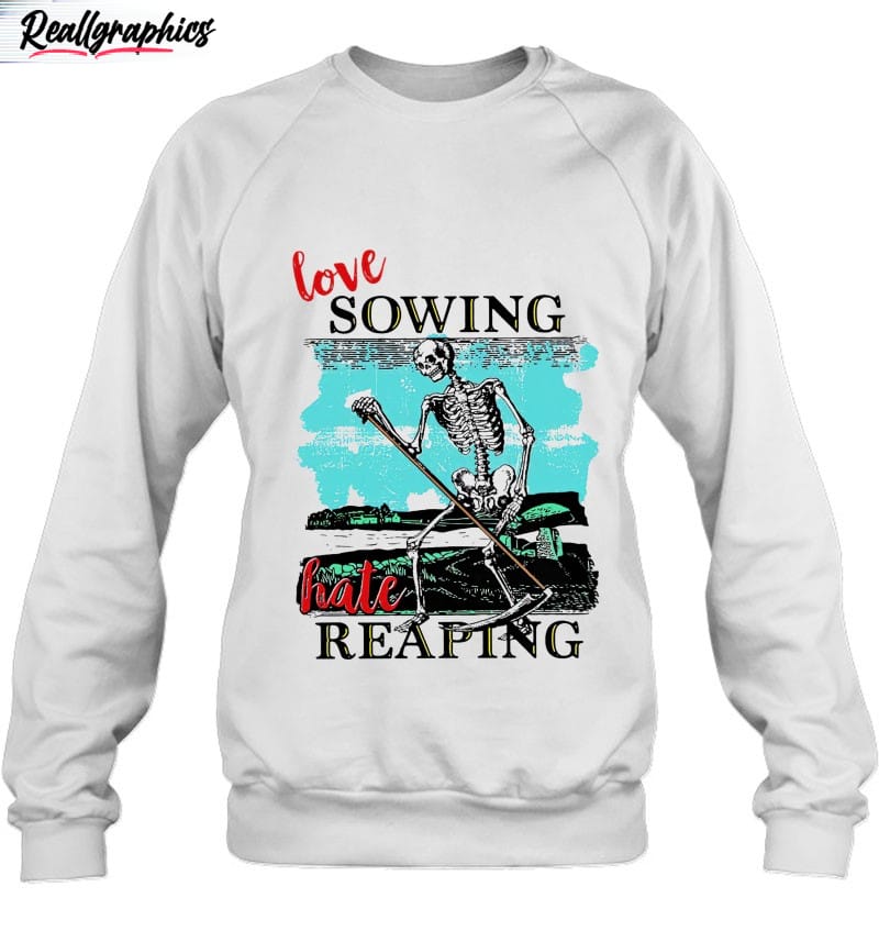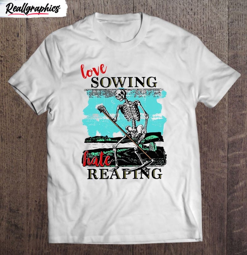 The Love Sowing Hate Reaping Halloween Shirt is an edgy and striking piece of clothing that encapsulates the spirit of the spooky holiday. With its bold design, featuring a skull surrounded by intricate patterns and the words Love Sowing Hate Reaping emblazoned on the front, this shirt is sure to turn heads. It symbolizes the dark and eerie side of Halloween, reminding us that love and hate can sometimes go hand in hand, while also celebrating the fun and excitement of the season. It's the perfect shirt for those who want to make a statement and embrace the Halloween spirit with style.