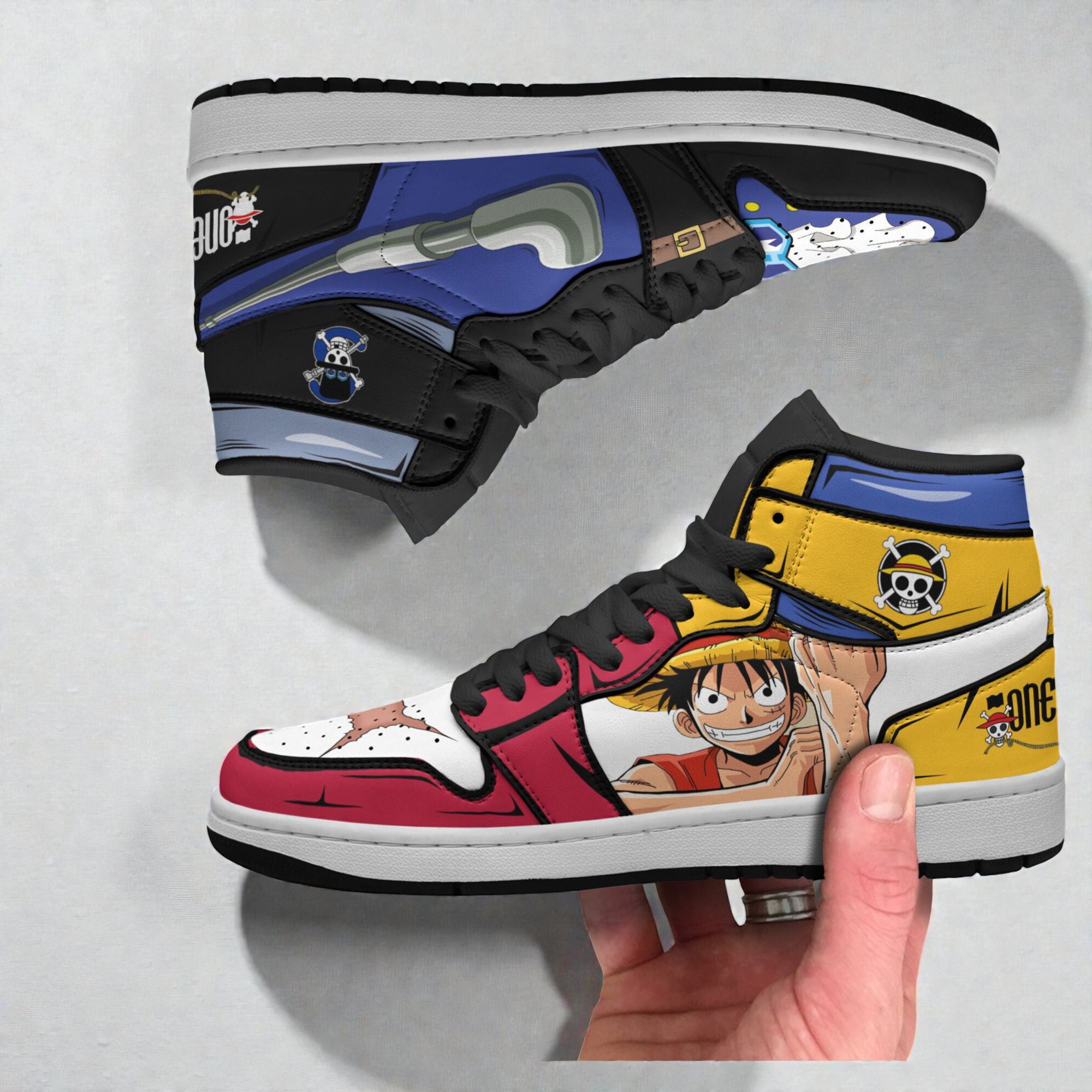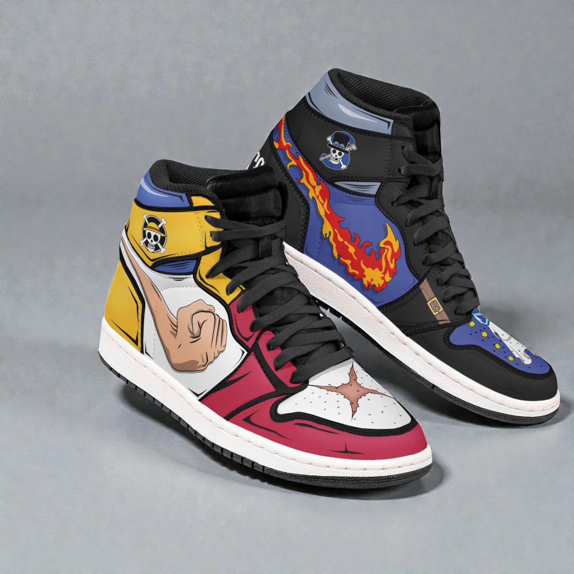 The moment you glance at these shoes, your eyes lock onto the vibrant clash of reds and blues, perfectly capturing the fiery spirit of Luffy and the cool resolve of Sabo. The high-top silhouette isn’t just a sneaker—it’s a canvas bursting with action, peppered with skull motifs and pirate iconography that feel like they just leapt out of the manga pages. Split colors and bold graphics don’t shy away from attention. Instead, they shout out with a playful energy, like streetwear that’s ready to tell a story as loud as its wearer. Look closer, and the stylized pirate text and graphic logos add an edge that’s unmistakably anime-inspired yet grounded in urban fashion. These shoes pack personality into every stitch, making them an instant conversation starter. Pair them with laid-back jeans and a graphic tee or throw on a statement jacket for a bit of flair on convention day or just a casual hangout. They dare you to be bold, to mix playful colors and adventurous vibes effortlessly. This isn’t sneakerwear for the faint-hearted. It suits those who live and breathe One Piece — the die-hard anime fans who know every twist and turn of Luffy and Sabo’s journey. It’d also thrill sneakerheads looking for something that breaks the mold with a graphic punch. Gifting these to a One Piece devotee could light up their day, instantly stitching a piece of their favorite world to their everyday style. The Luffy Sabo anime shoes aren’t just footwear— they’re a spirited nod to adventure, friendship, and fearless individuality.