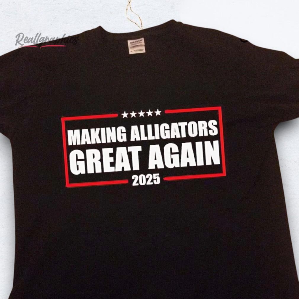 Show your love for gators! Snag this limited-edition tee celebrating the future of our favorite reptile. Get yours now and be part of the movement! Perfect for reptile enthusiasts and anyone who wants to show off their unique style. Don't miss out! Making Alligators Great Again 2025 Shirt