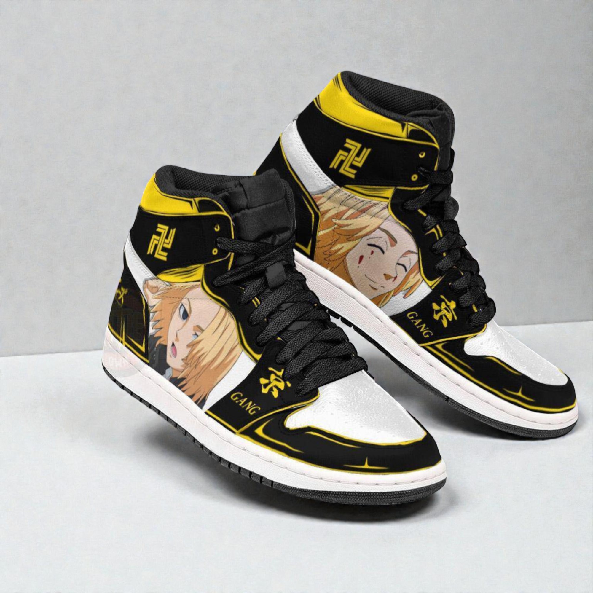 There’s something electric about these Manjiro Sano anime shoes that catches your eye immediately—the sharp contrast of black and yellow screaming energy and rebellion. Manjiro, or Mikey, isn't just a name from Tokyo Revengers; he’s the heart of the story, a symbol of fierce loyalty and unbreakable spirit. These shoes bring that same vibe to life with bold, angular typography reminiscent of classic kanji strokes, combined with graphic details that capture the intensity of his character. Look closer and you’ll notice how every inch tells a story. The stylized “Tokyo” text anchors the design, while anime facial features subtly peek through, offering a nod to fans who know those moments when Mikey’s determination shines brightest. It’s streetwear with a purpose, mixing that youthful energy with a heroic edge. Craftsmanship shines in the way the illustration blends seamlessly across the sneaker boots, not just slapped on. Each line and color choice feels intentional, wrapping your feet in a narrative that’s just as much about grit as it is style. These aren’t just shoes; they’re wearable art with enough detail to start conversations. Collectors will appreciate the balance between boldness and authenticity. Whether you’re hitting conventions, adding something exclusive to your rotation, or gifting a true anime enthusiast, these sneakers deliver more than just looks—they carry the spirit of a character who fights as hard as anyone out there. If you live and breathe Tokyo Revengers, these are made to stand out.Manjiro Sano Anime Shoes Custom Tokyo Revengers Jordan Sneaker Boots