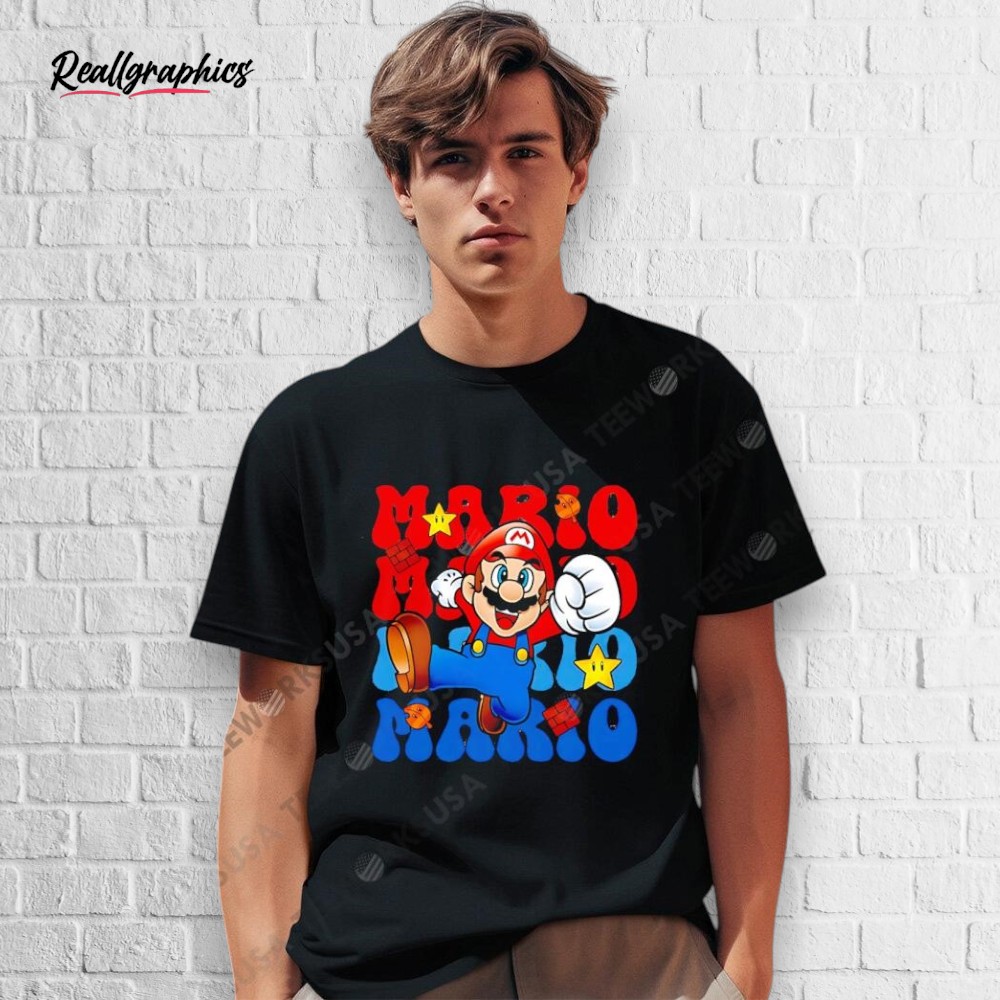 Level up your wardrobe with this adorable tee! Featuring everyone's favorite plumber in a fun, repeating cartoon design. Soft, comfy, and perfect for adding a touch of Nintendo magic to your everyday style. Get yours today! Mario Repeat Cartoon Cute Shirt