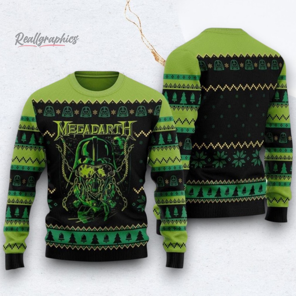 Rock into the holidays with this killer Megadeth Christmas Sweater! 🤘🎸 Deck the halls with Dave Mustaine (and skulls) this season. Perfect for headbangers and metalheads who want to slay the holiday party scene. Get yours now before they're gone! 🤘