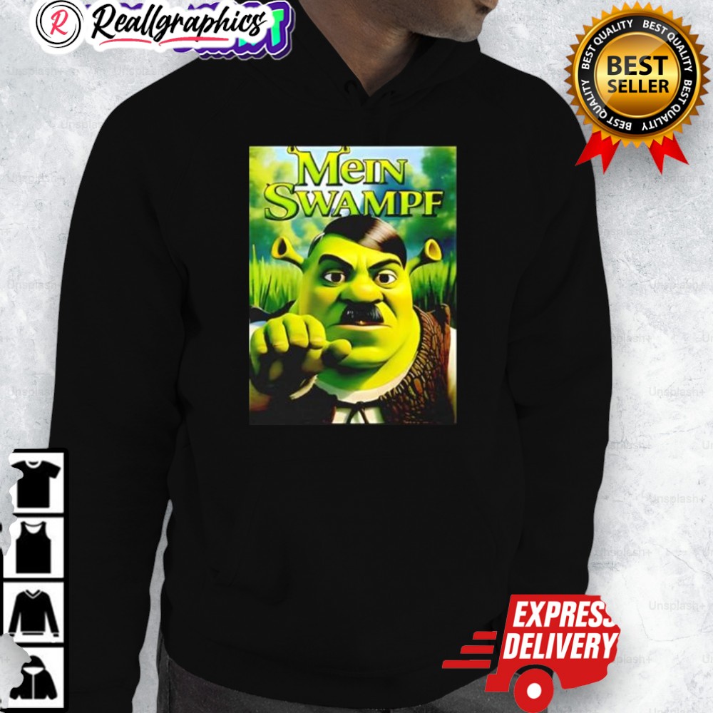 This shirt is truly something else. Prepare for double takes and awkward conversations! A bizarre mashup that's sure to spark debate. Get yours now if you dare! Mein Swampf Shrek And Adolf Hitler Shirt