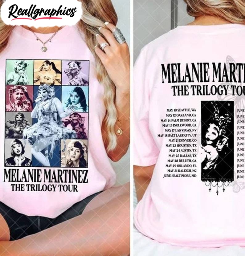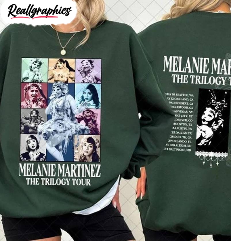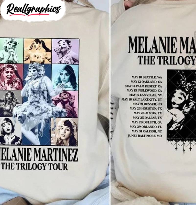 Step into the world of Melanie Martinez with our exclusive tour merchandise celebrating her Trilogy Tour 2024. This unique, short-sleeve crewneck combines comfort with standout style, making it the perfect addition for any fan's wardrobe. Show your love for Melanie and her iconic music while turning heads with this must-have piece.