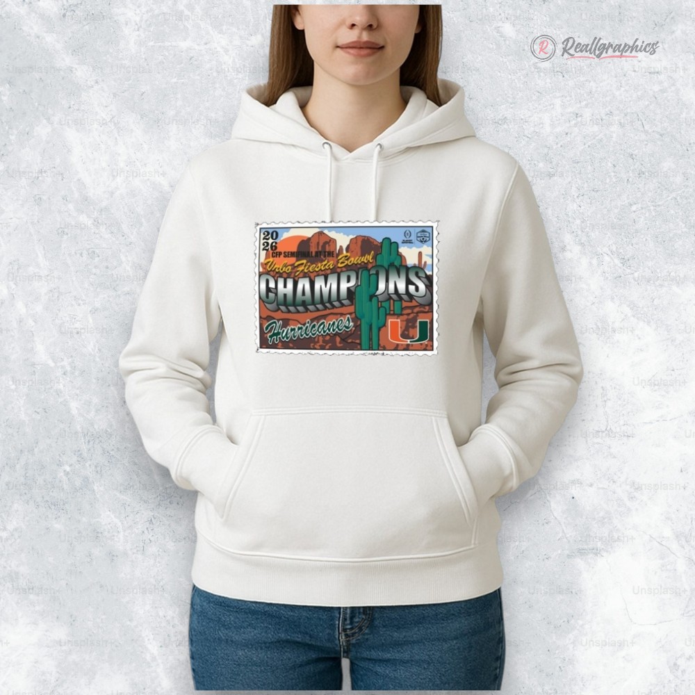 Rock your Canes pride with this exclusive hoodie! Celebrate the Miami Hurricanes' unforgettable 2026 Vrbo Fiesta Bowl victory in style. Limited edition, get yours now and show your unwavering support! A must-have for any true fan. Miami Hurricanes 2026 Vrbo Fiesta Bowl Champions Hoodie