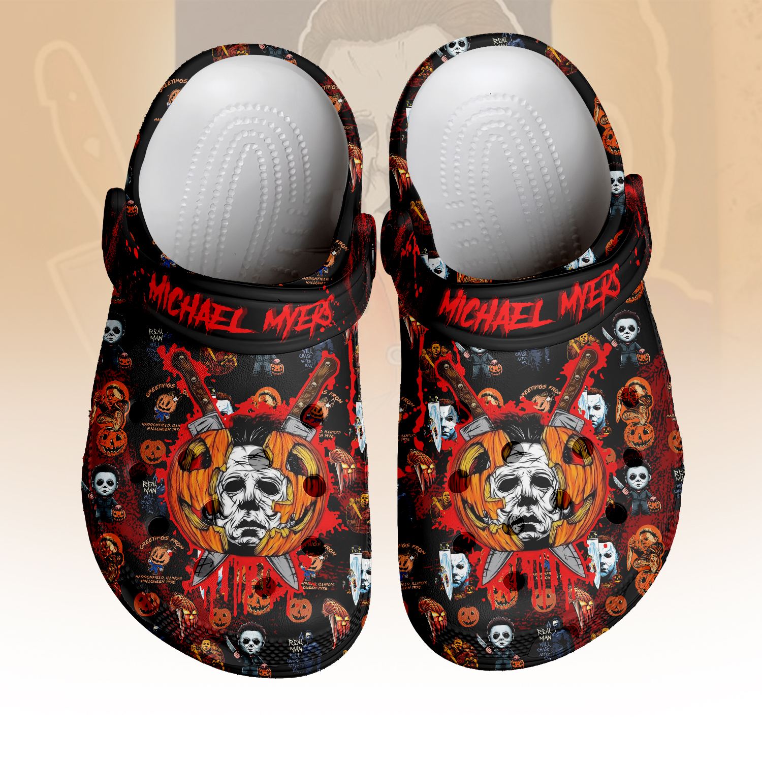 If you’re a horror fan, these Michael Myers clogs are made for you. The design goes all-in with that dark Halloween vibe—black and blood-red tones, scary details all over, and a bold MICHAEL MYERS name across the strap that instantly stands out.