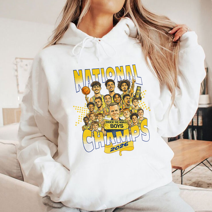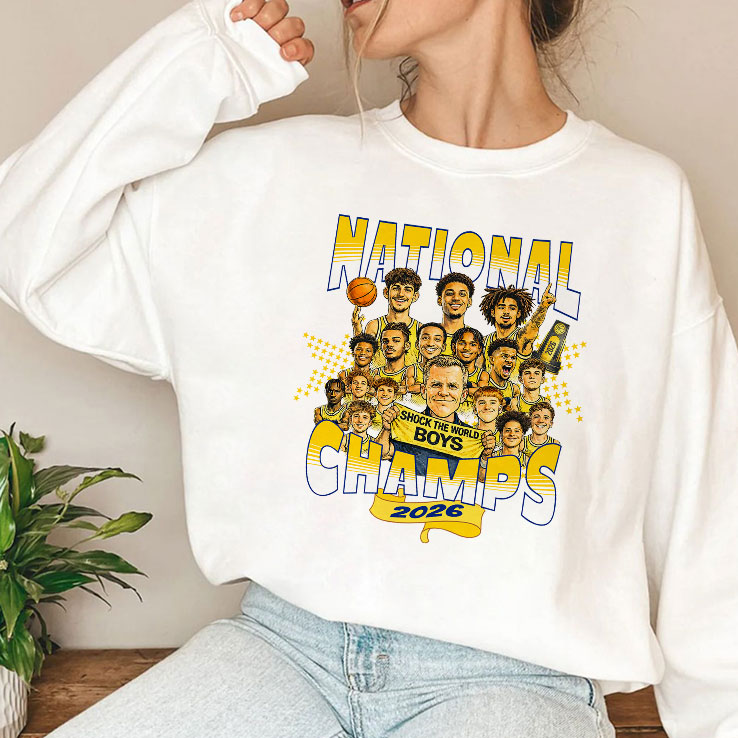 When the energy of a packed stadium surges through the air, it’s the kind of electricity only true fans know—loud chants, painted faces, and those unforgettable championship moments. Capturing that raw spirit, this design centers on a bold, caricature-style group of Michigan Wolverines players, each one brimming with the kind of fierce pride that defines a team on top of the world. Their animated expressions and outsized presence create a dynamic scene, framed by strong block letters declaring National Champs 2026 in vibrant yellow and blue hues, the colors that echo every banner and jersey worn by loyal supporters. There’s something satisfying in wearing a graphic that doesn’t just reference a title, but celebrates the identity of a community. It’s the nod between classmates, the shared history of late-night watch parties, and the collective joy of victories that ripple far beyond the scoreboard. This design resonates because it’s not just about the trophy—it’s about the moments and memories woven between touchdown cheers and halftime talks. Whether tucked into a casual weekend lineup or packed among gear for game day, this shirt speaks to the kind of fan who wears their allegiance with pride. It fits naturally in the rotation of someone who’s part of the Michigan scene—students balancing books and basketball, friends exchanging gifts that carry meaning beyond the moment, or anyone eager to commemorate a title that defined a season worth remembering.